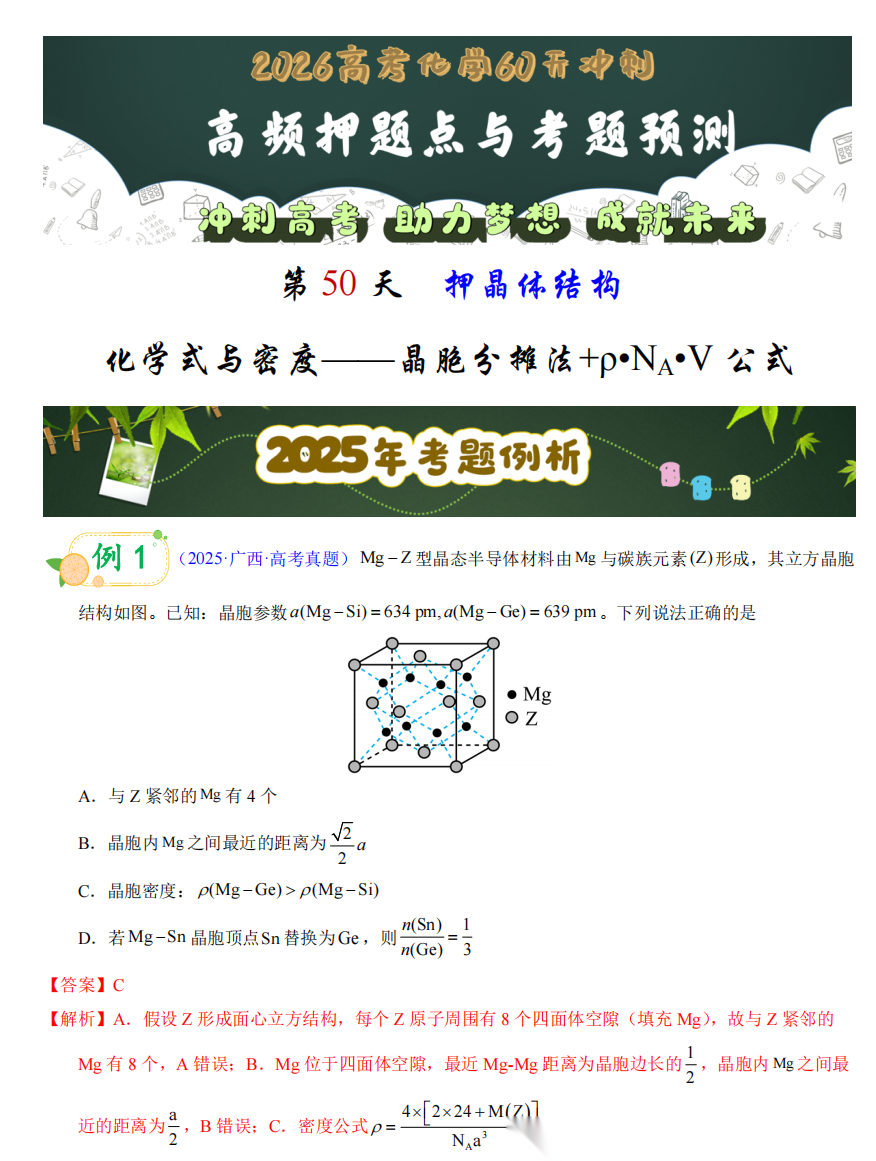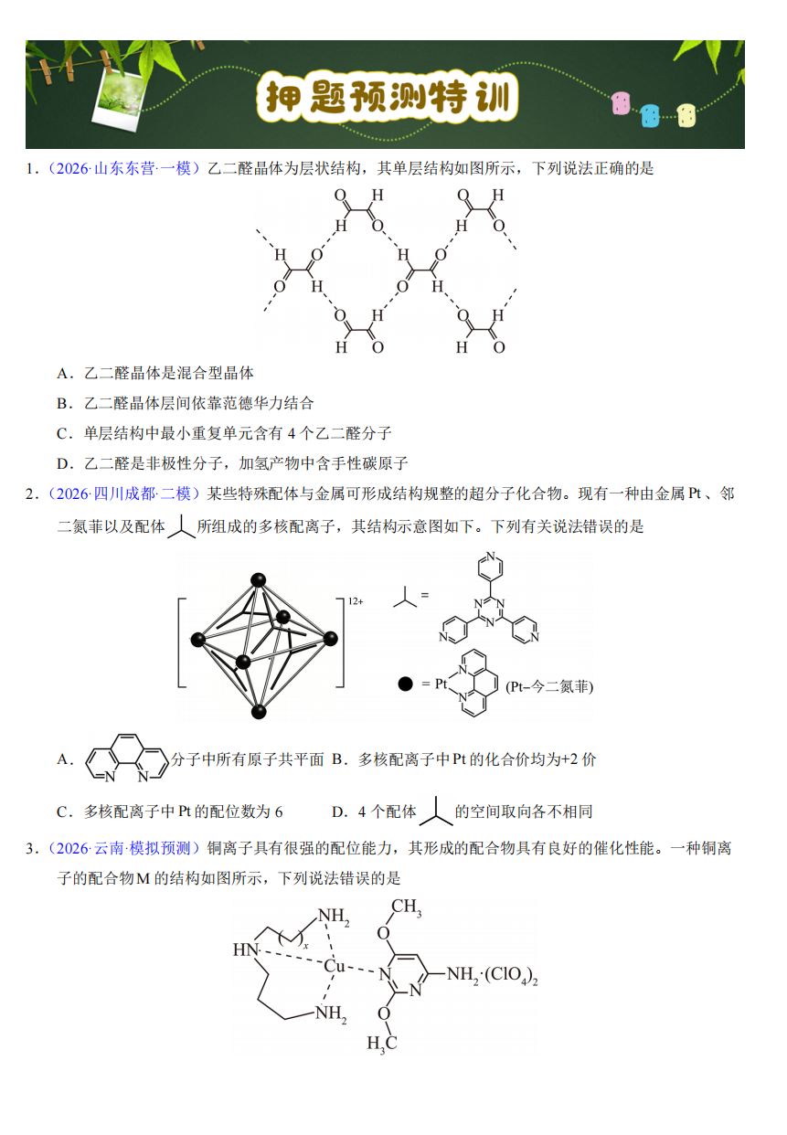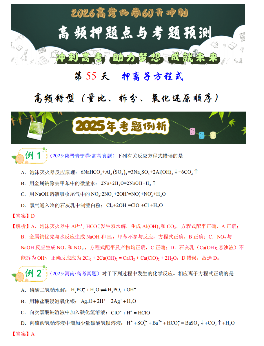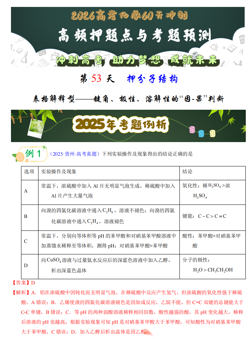【高考化学】【冲刺·高频押题】2026年高考化学最后60天冲刺·高考化学高频押题点与考题预测(全国通用)学生版+解析版(完整版)(持续更新)