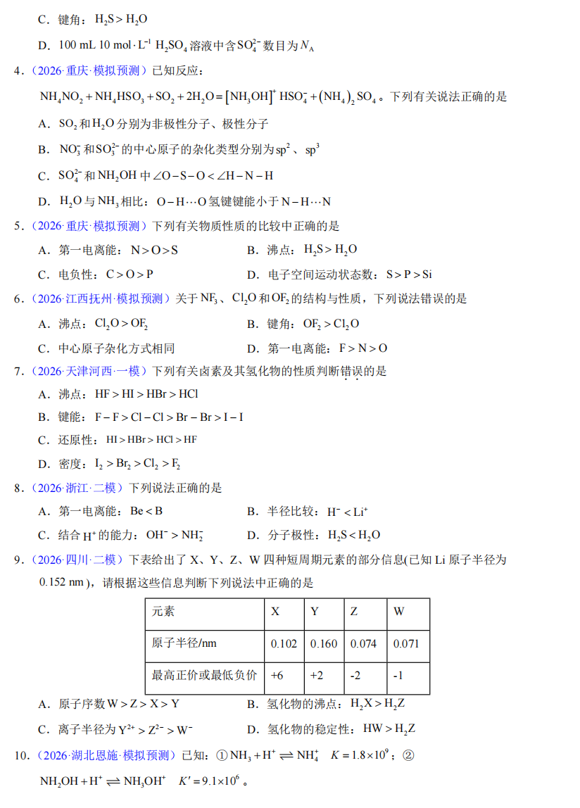 【湖北卷】湖北省新八校2026年4月高三年级4月教学质量教研考试(4.14-4.15) 全科试题卷+答案 【湖北卷】湖北省新八校2026年4月高三年级4月教学质量教研考试(4.14-4.15) 全科试题卷+答案