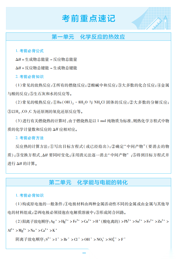 【高中化学】【考前重点速记】JKJ 单元双测卷考前重点速记----2026版高中化学考前重点速记手册(完整版)