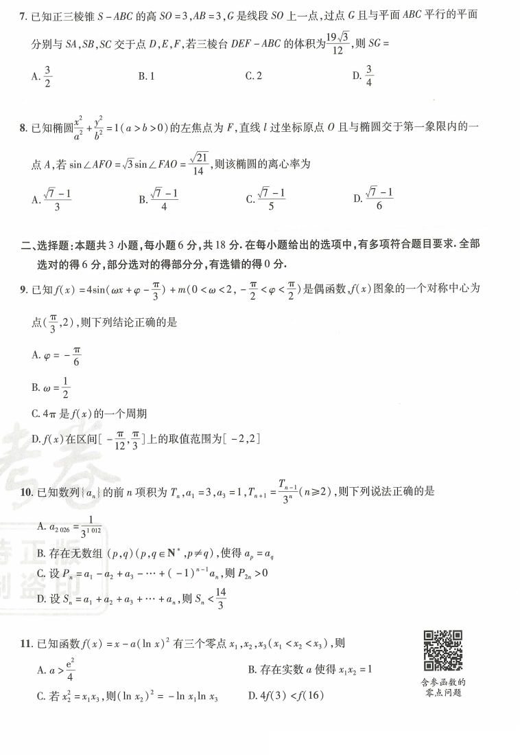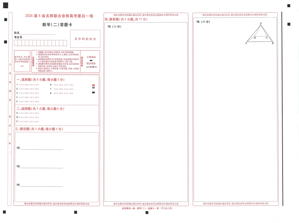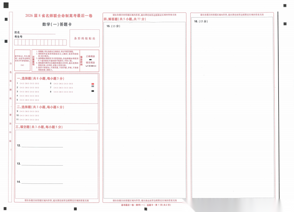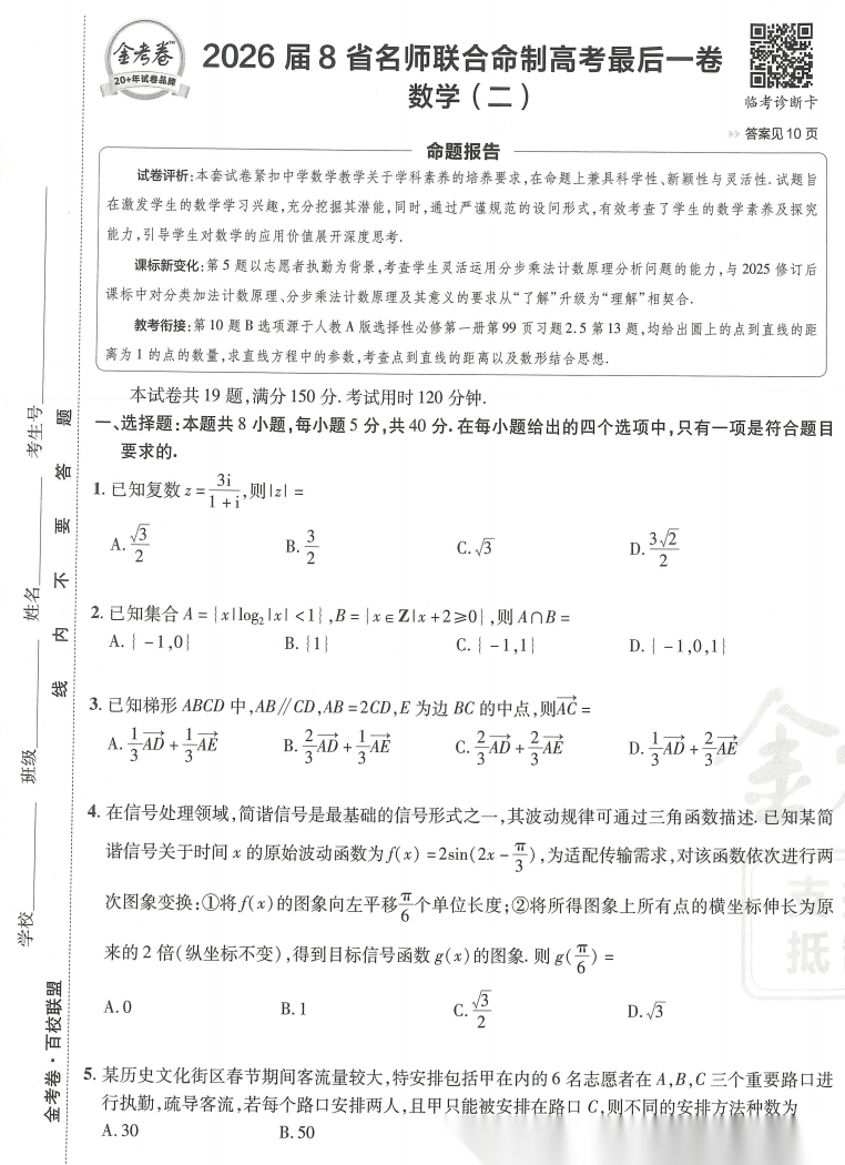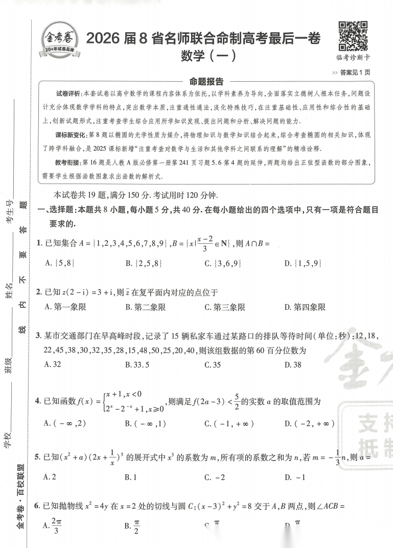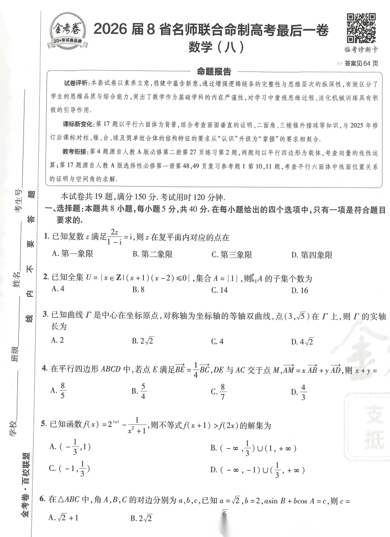 【高考数学】【最后一卷】JKJ百校联盟2026高考数学最后一卷--8省名师独家命制,固定高考命题点----数学试题卷+答题卡+规范阀体6维解析册