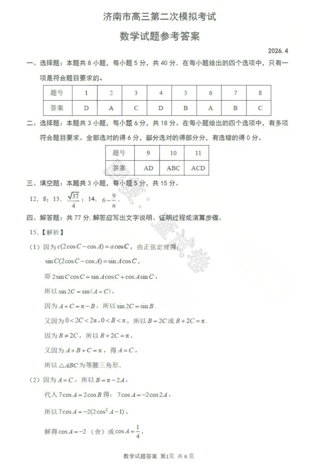 【高考数学】【最后一卷】JKJ百校联盟2026高考数学最后一卷--8省名师独家命制,固定高考命题点----数学试题卷+答题卡+规范阀体6维解析册 【高考数学】【最后一卷】JKJ百校联盟2026高考数学最后一卷--8省名师独家命制,固定高考命题点----数学试题卷+答...