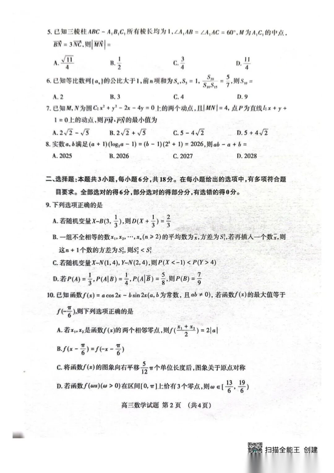 【高考数学】【最后一卷】JKJ百校联盟2026高考数学最后一卷--8省名师独家命制,固定高考命题点----数学试题卷+答题卡+规范阀体6维解析册 【高考数学】【最后一卷】JKJ百校联盟2026高考数学最后一卷--8省名师独家命制,固定高考命题点----数学试题卷+答...