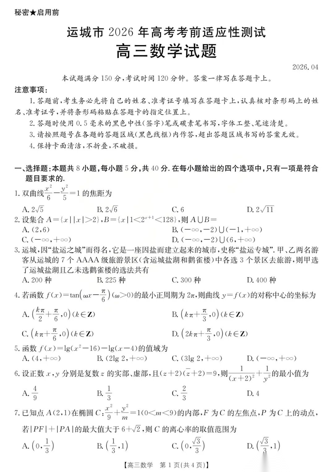 【高考数学】【最后一卷】JKJ百校联盟2026高考数学最后一卷--8省名师独家命制,固定高考命题点----数学试题卷+答题卡+规范阀体6维解析册 【高考数学】【最后一卷】JKJ百校联盟2026高考数学最后一卷--8省名师独家命制,固定高考命题点----数学试题卷+答...
