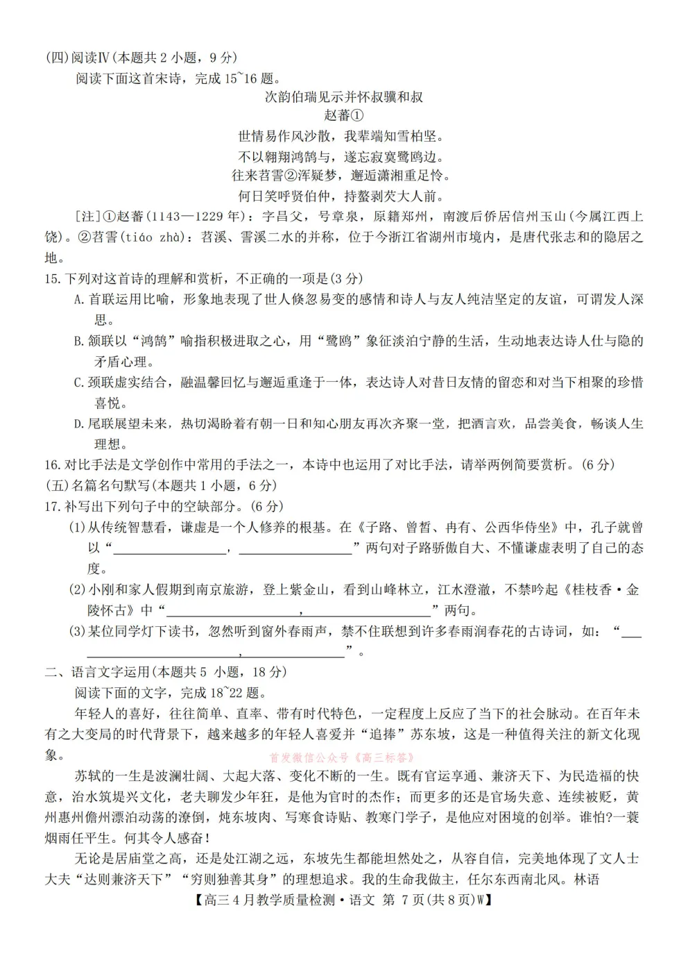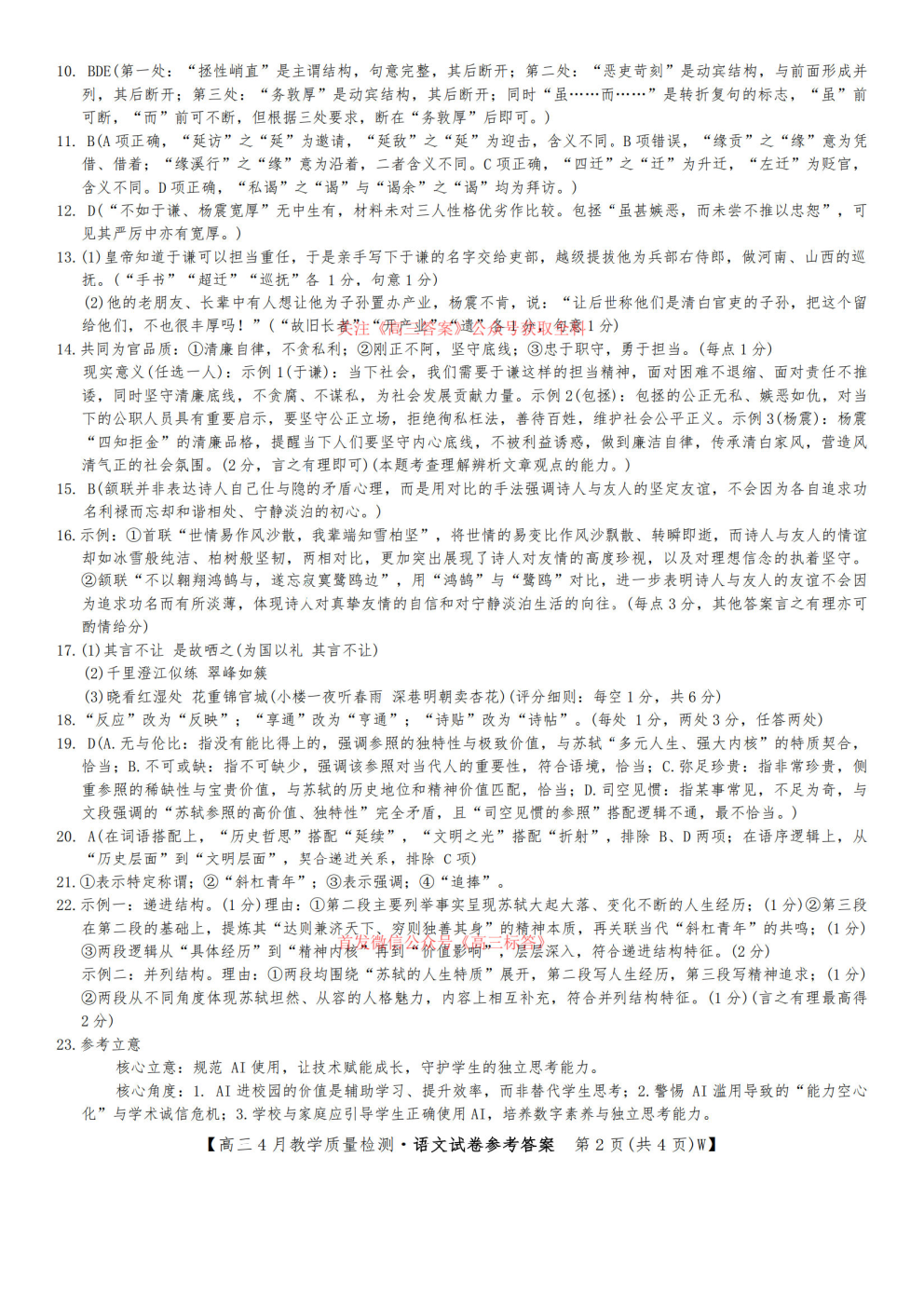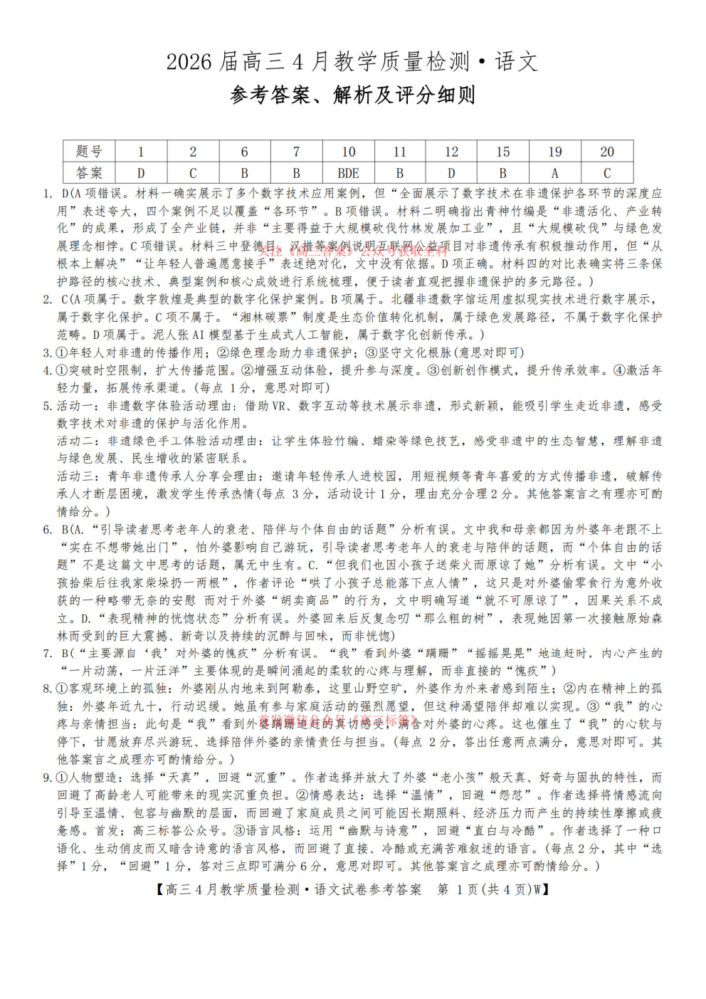 江淮十校2026届高三4月模拟考试答案 江淮十校2026届高三4月模拟考试答案