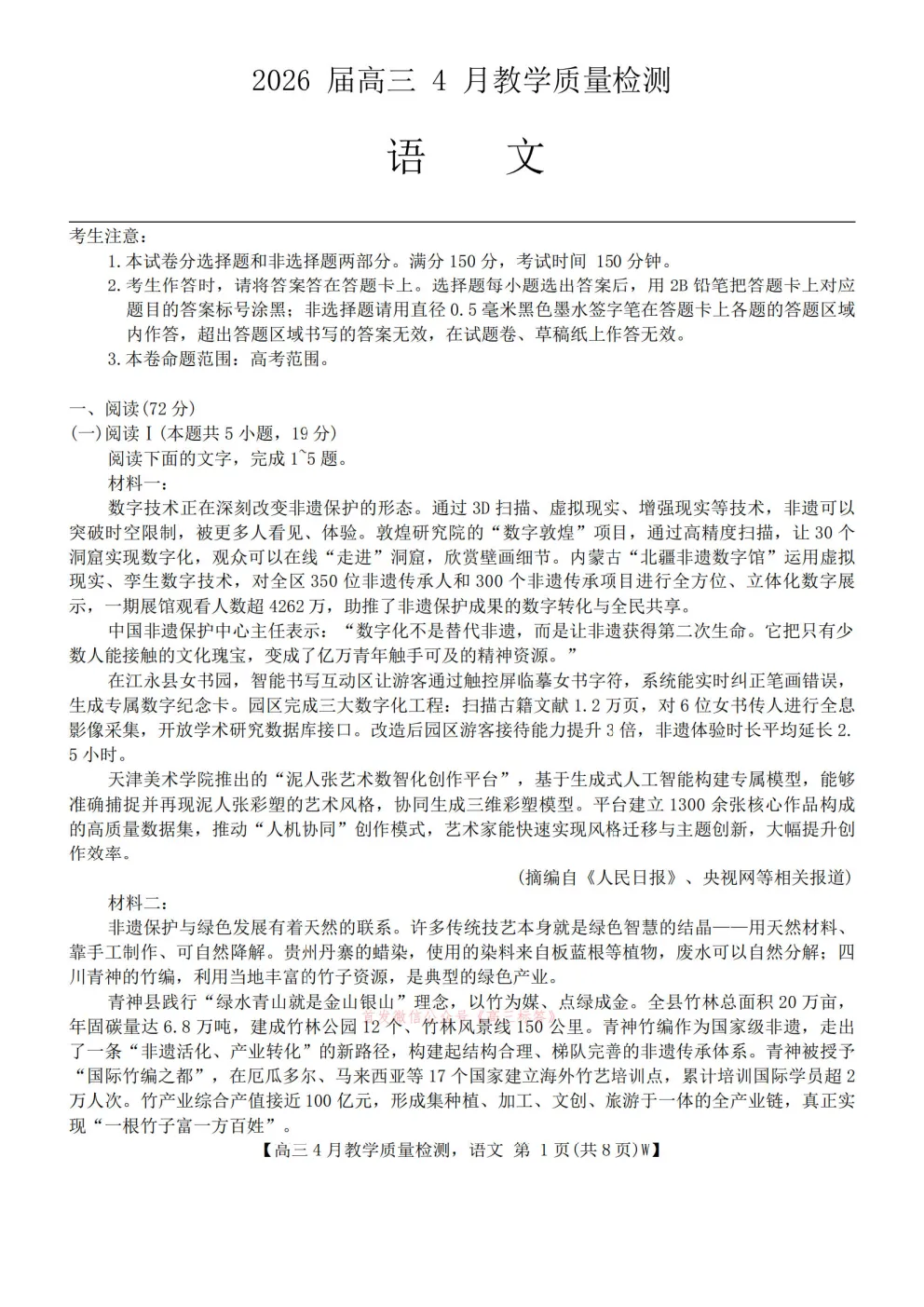 【全科】湖北新八校2026届高三4月联考(二模) 【全科】湖北新八校2026届高三4月联考(二模)