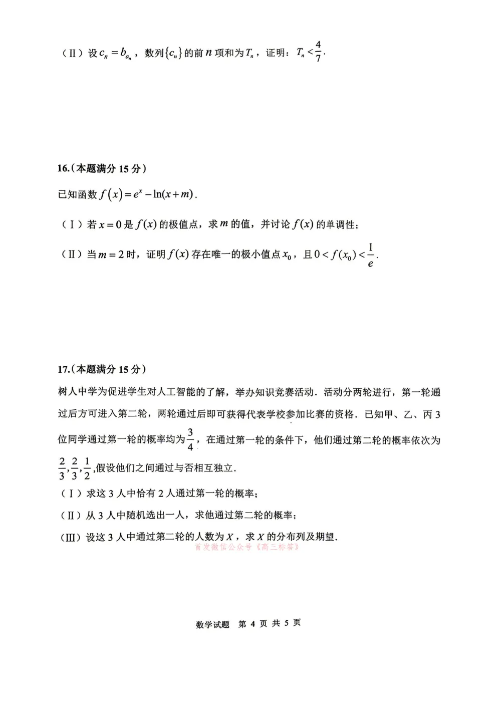江淮十校2026届高三4月模拟考试答案 江淮十校2026届高三4月模拟考试答案