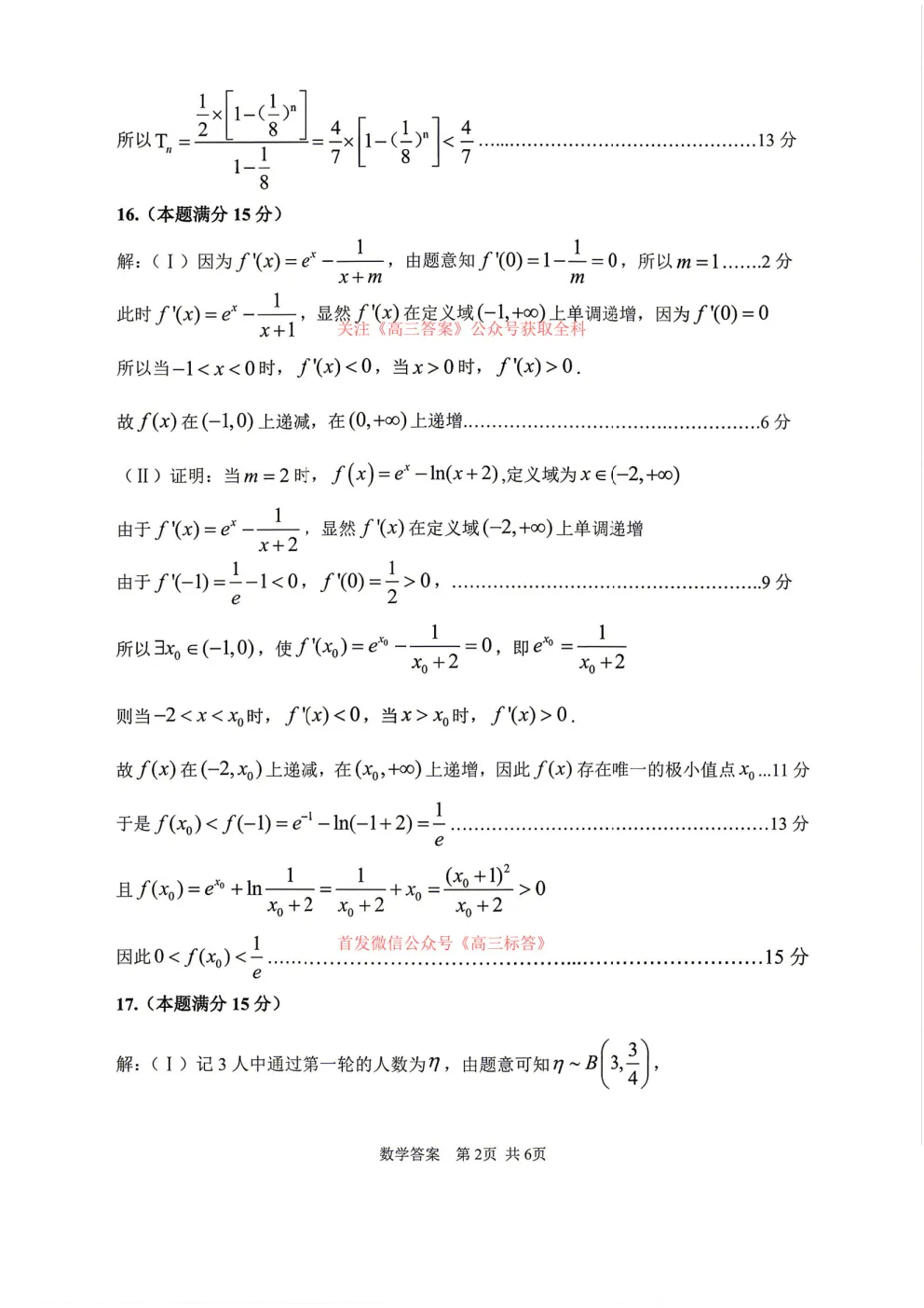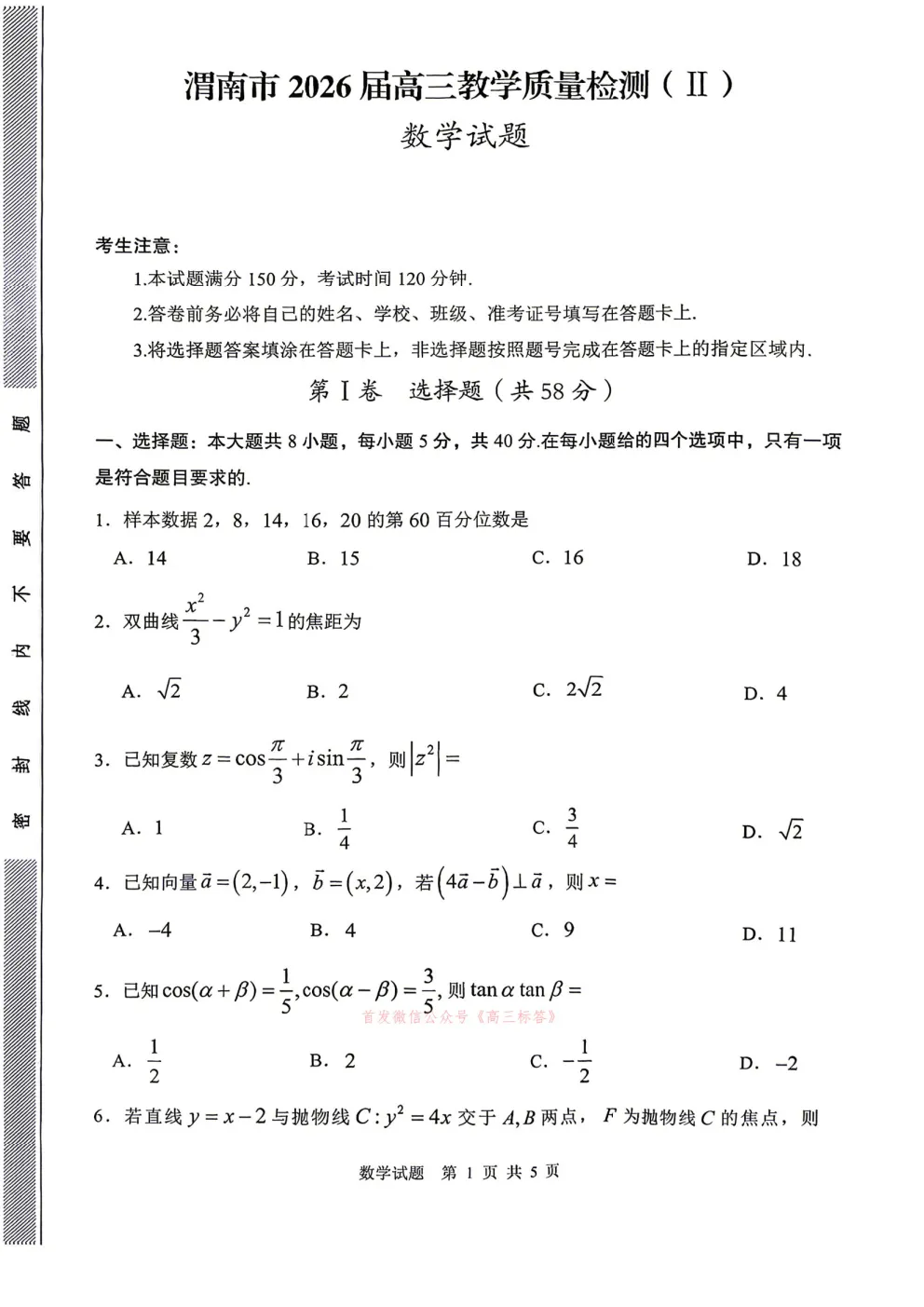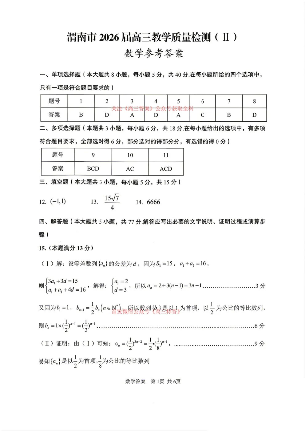 【渭南二模】渭南市2026届高三教学质量检测二答案
