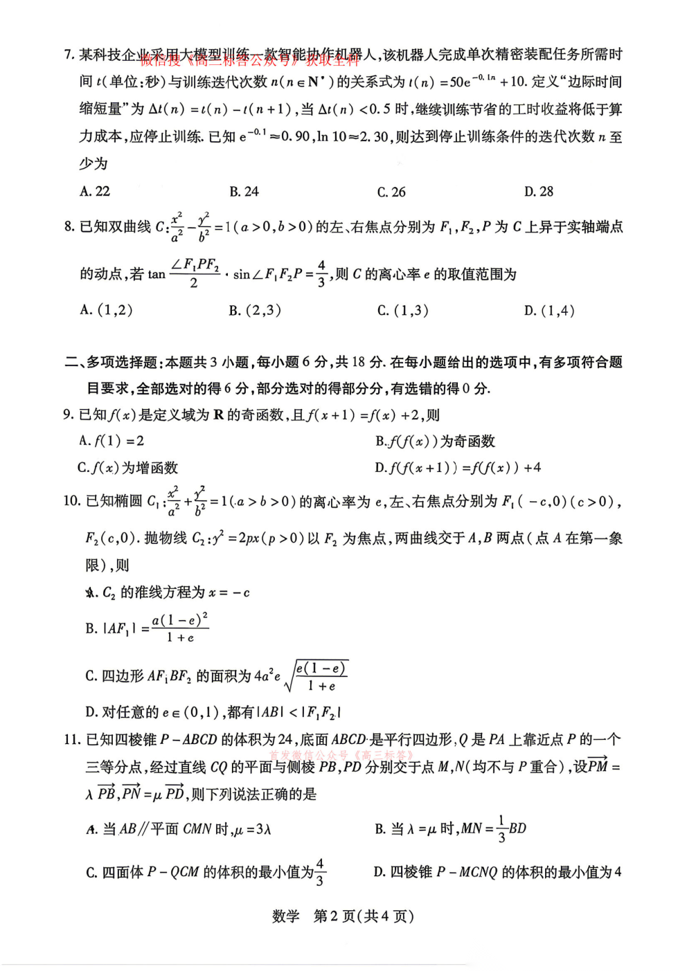 江淮十校2026届高三4月模拟考试答案 江淮十校2026届高三4月模拟考试答案