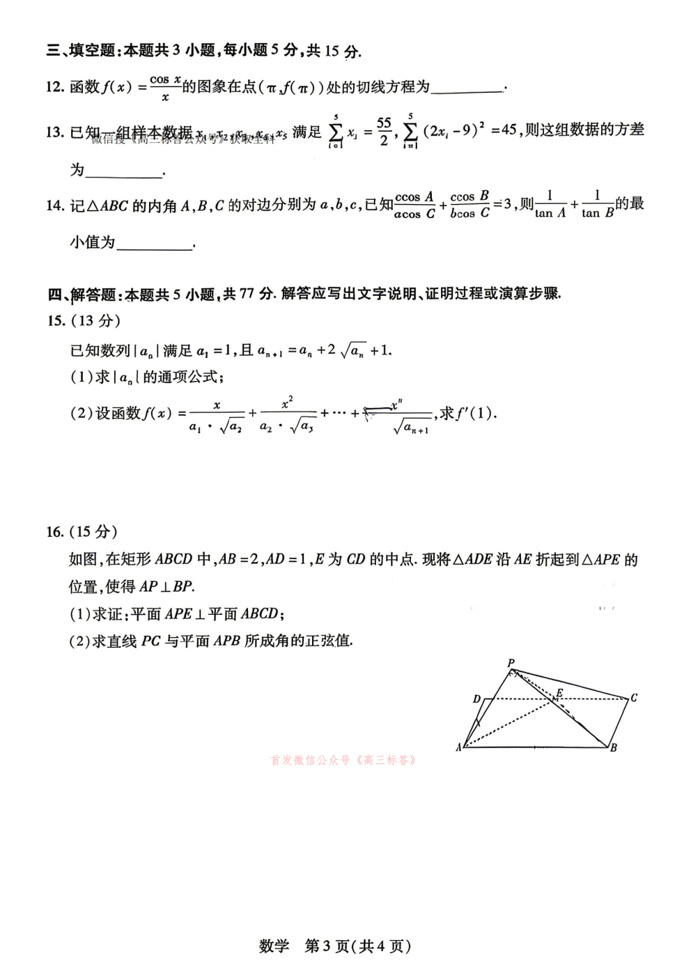 2026陕西高三年级4月阶段性检测答案 2026陕西高三年级4月阶段性检测答案