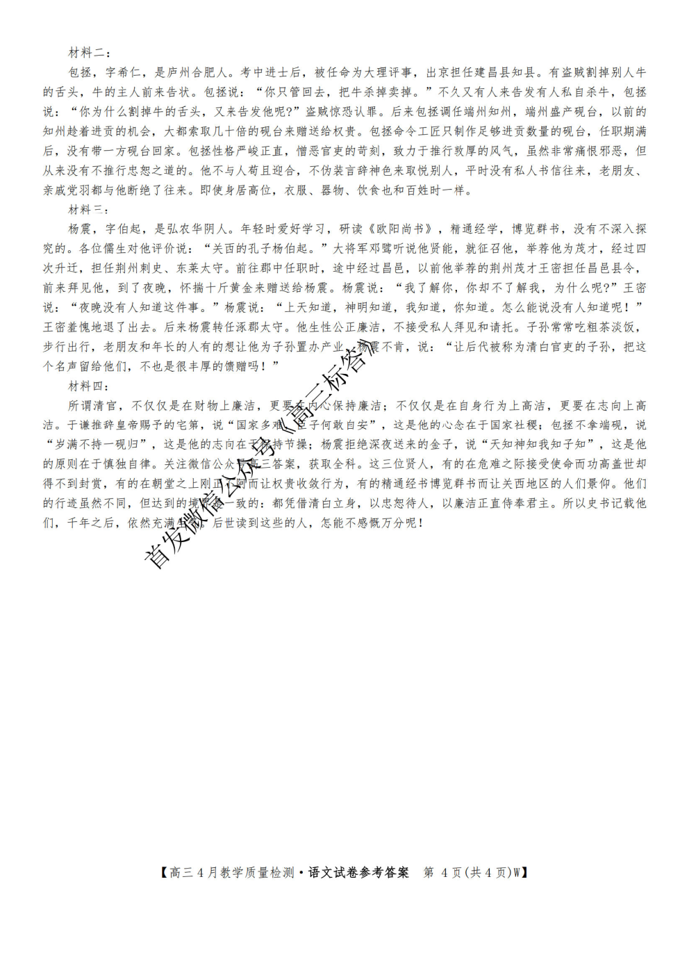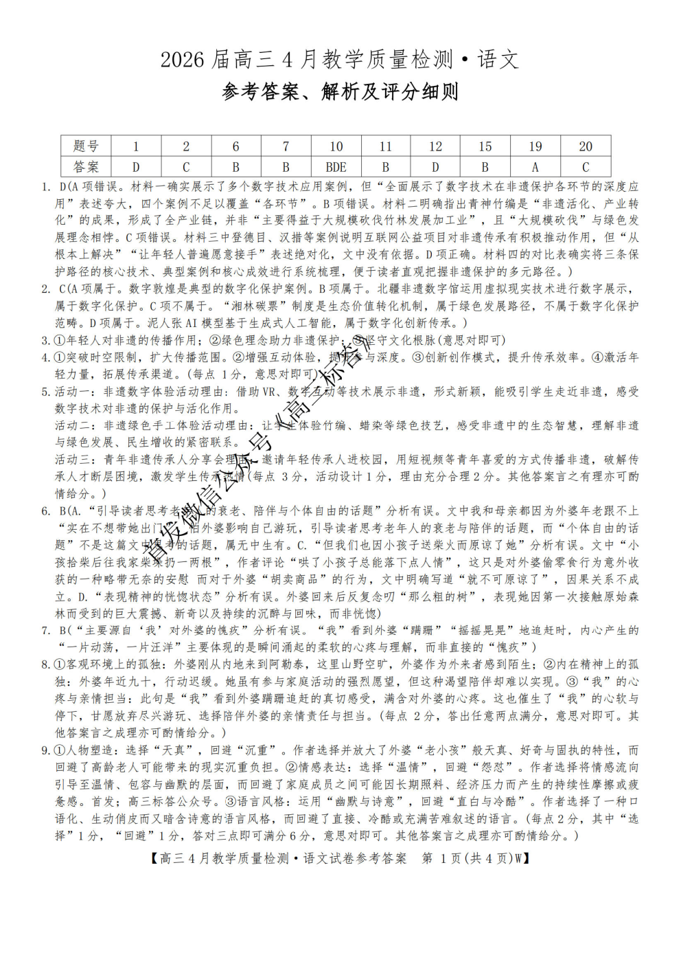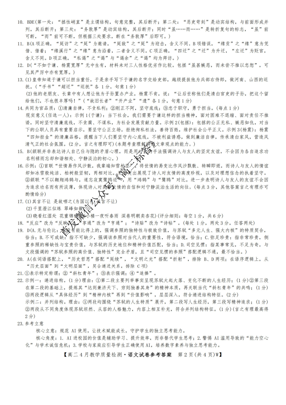 2026陕西高三年级4月阶段性检测答案 2026陕西高三年级4月阶段性检测答案