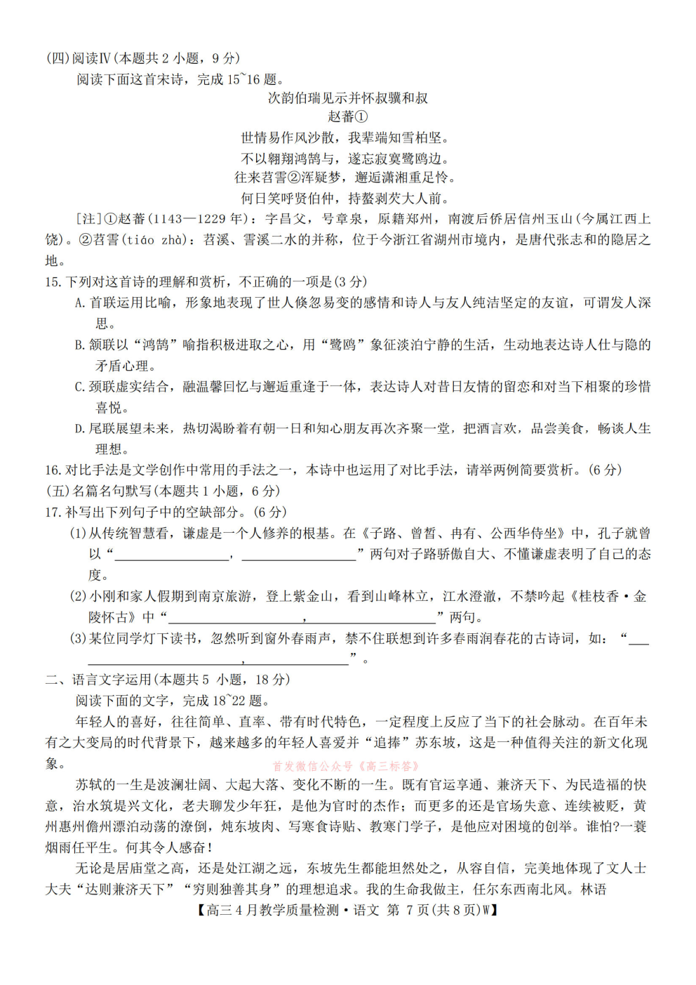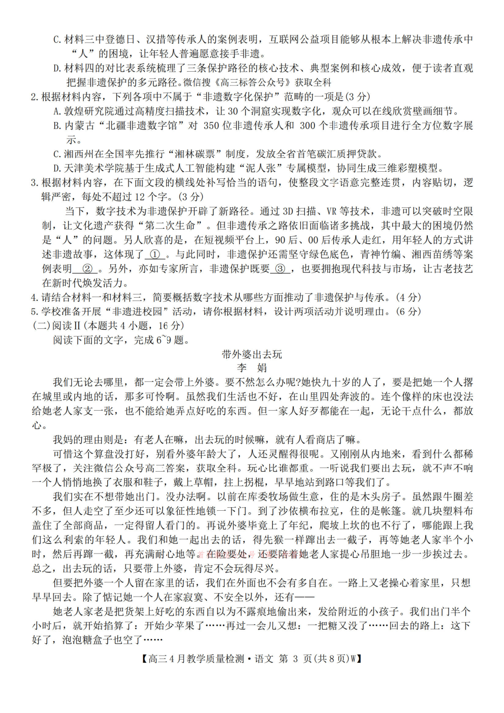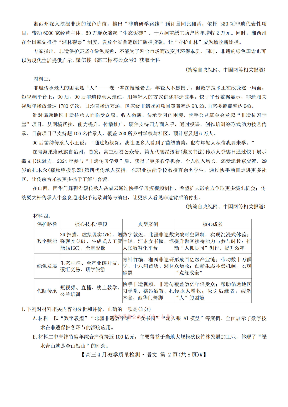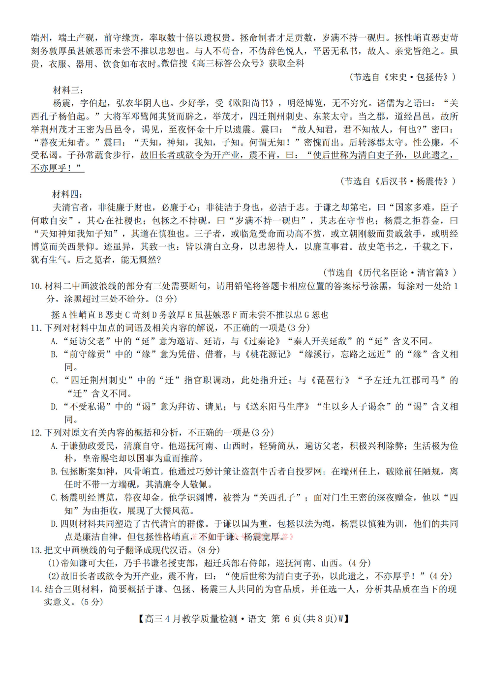 2026陕西高三年级4月阶段性检测答案 2026陕西高三年级4月阶段性检测答案