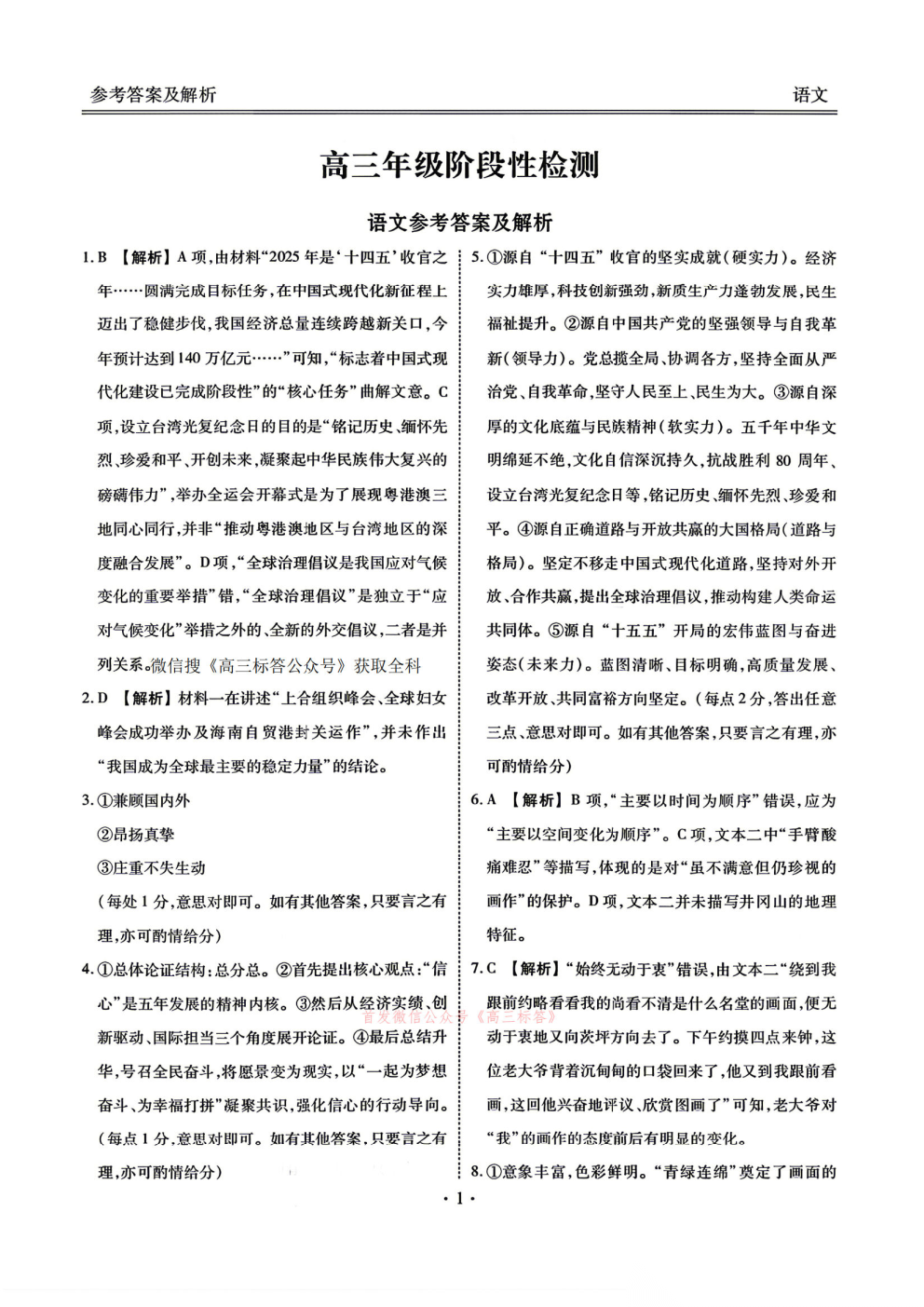 皖南八校2026届高三4月教学质量检测答案 皖南八校2026届高三4月教学质量检测答案