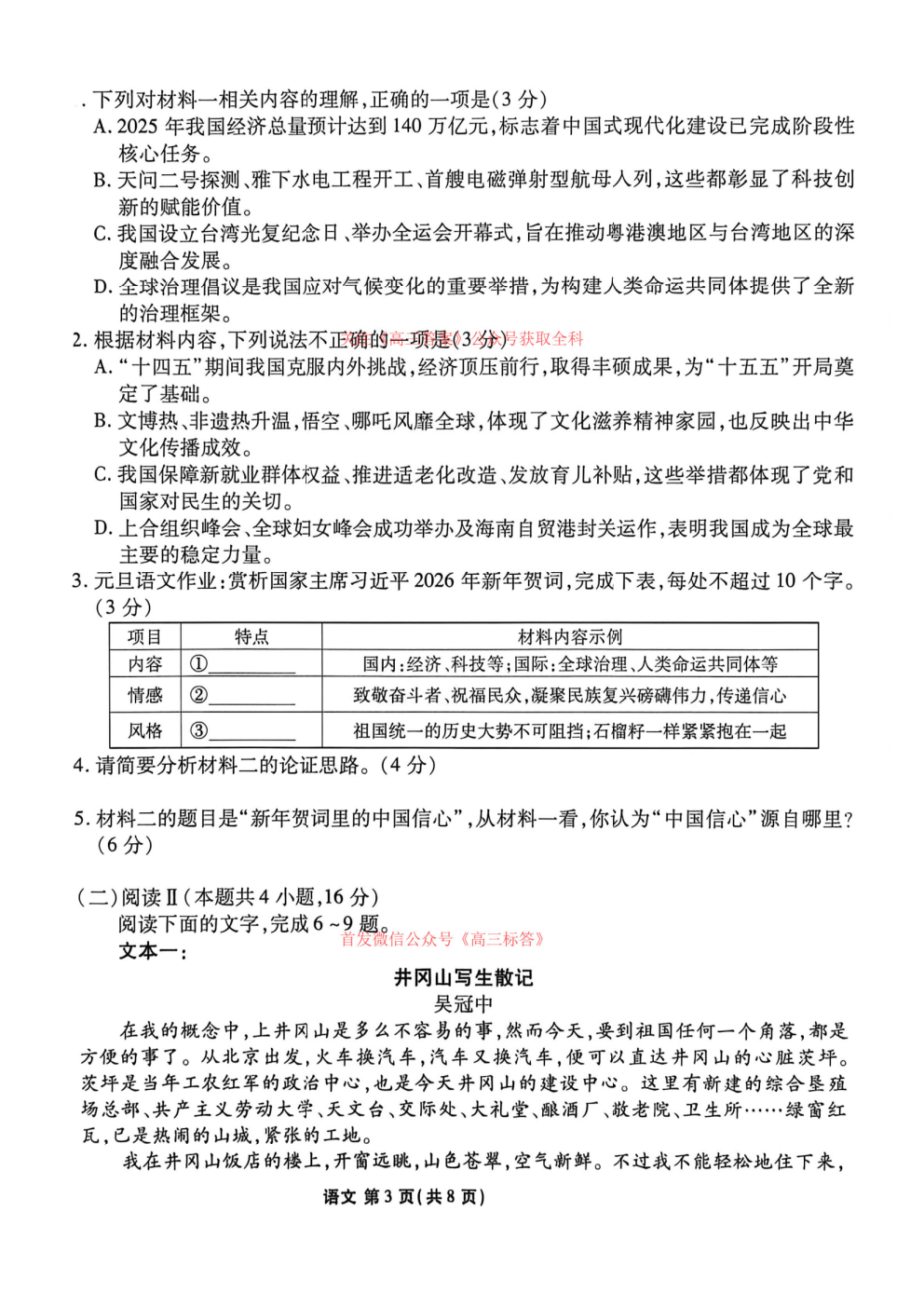 【上饶二模】上饶市2026届高三年级第二次高考模拟考试语数英物理、历史答案 【上饶二模】上饶市2026届高三年级第二次高考模拟考试语数英物理、历史答案