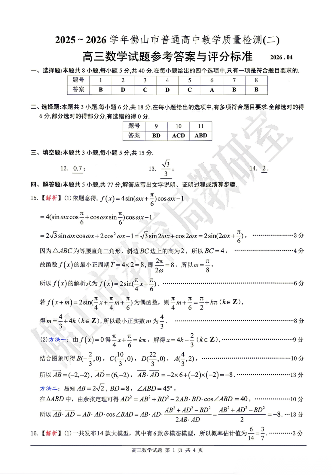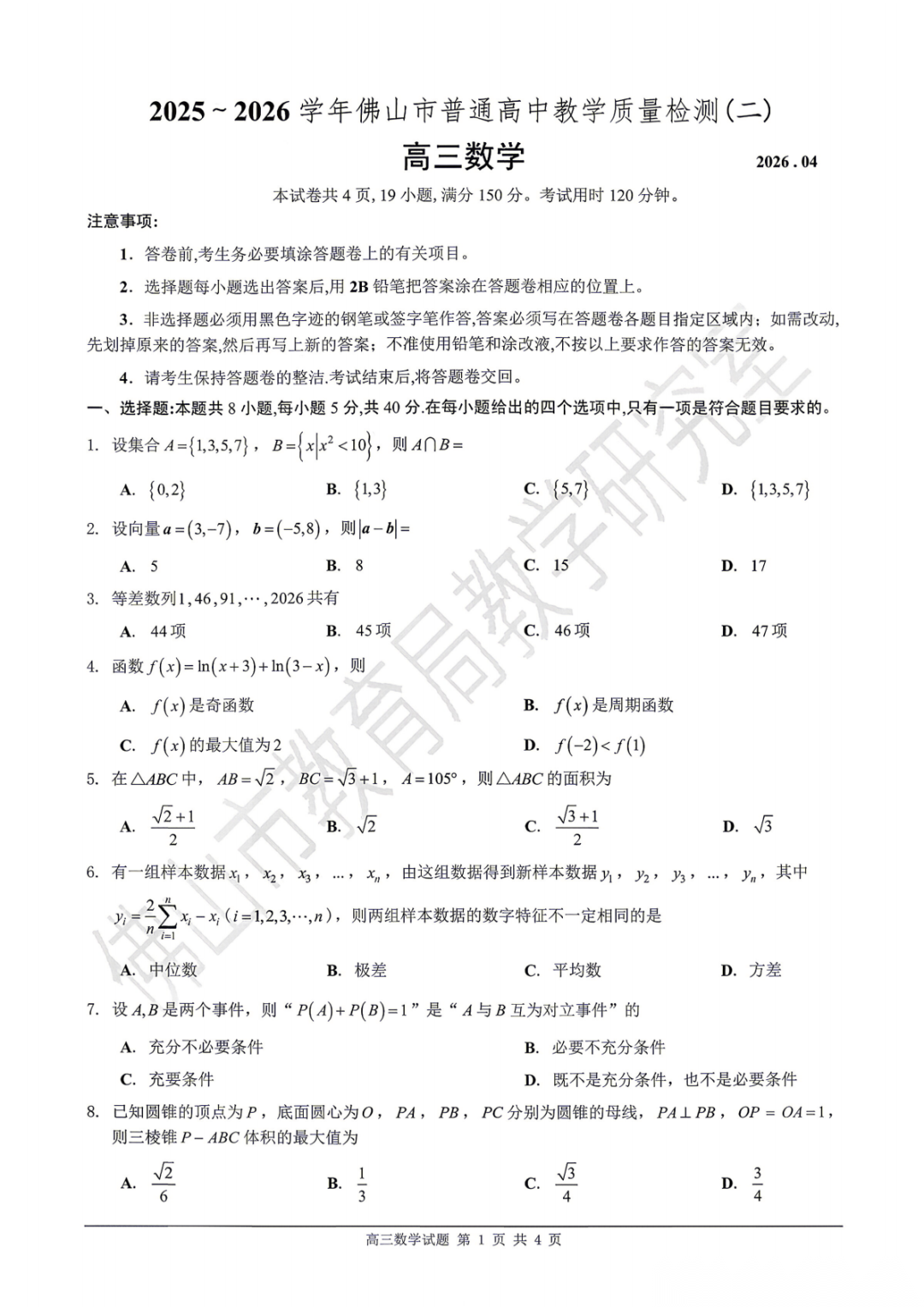 【佛山二模全科】2025~2026学年佛山市普通高中教学质量检测(二)