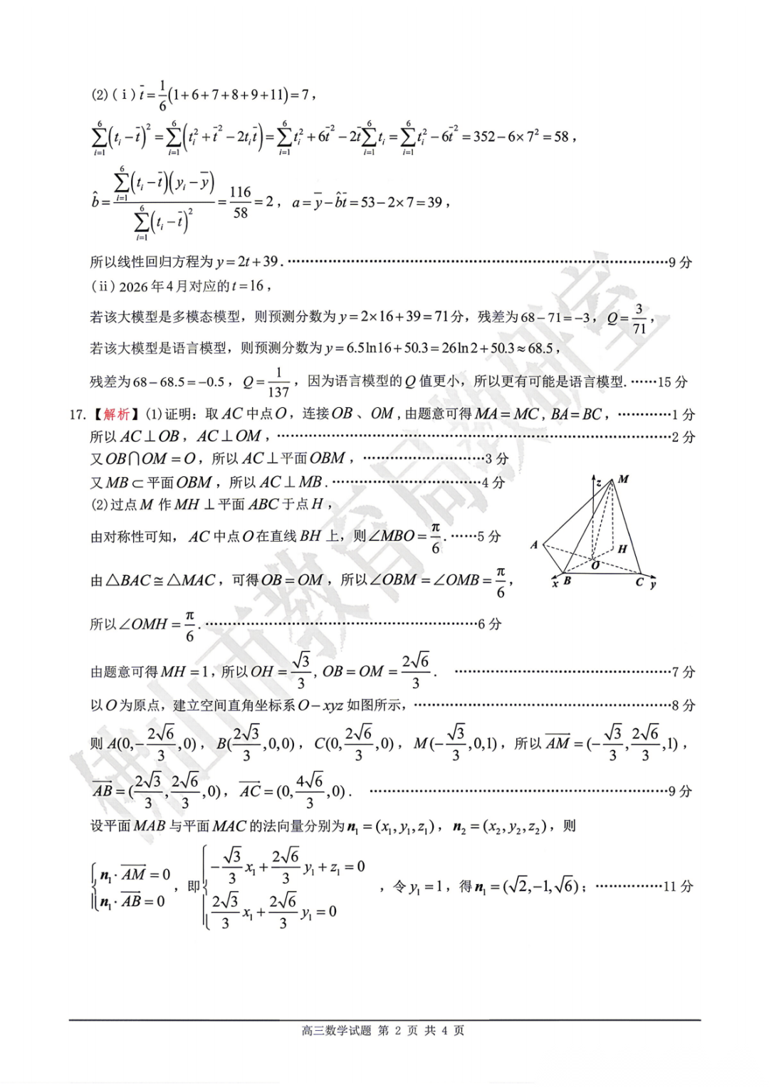 【渭南二模】渭南市2026届高三教学质量检测二答案 【渭南二模】渭南市2026届高三教学质量检测二答案