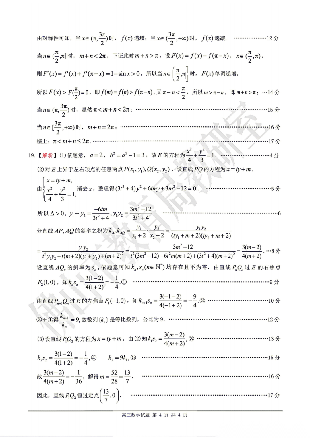2026陕西高三年级4月阶段性检测答案 2026陕西高三年级4月阶段性检测答案