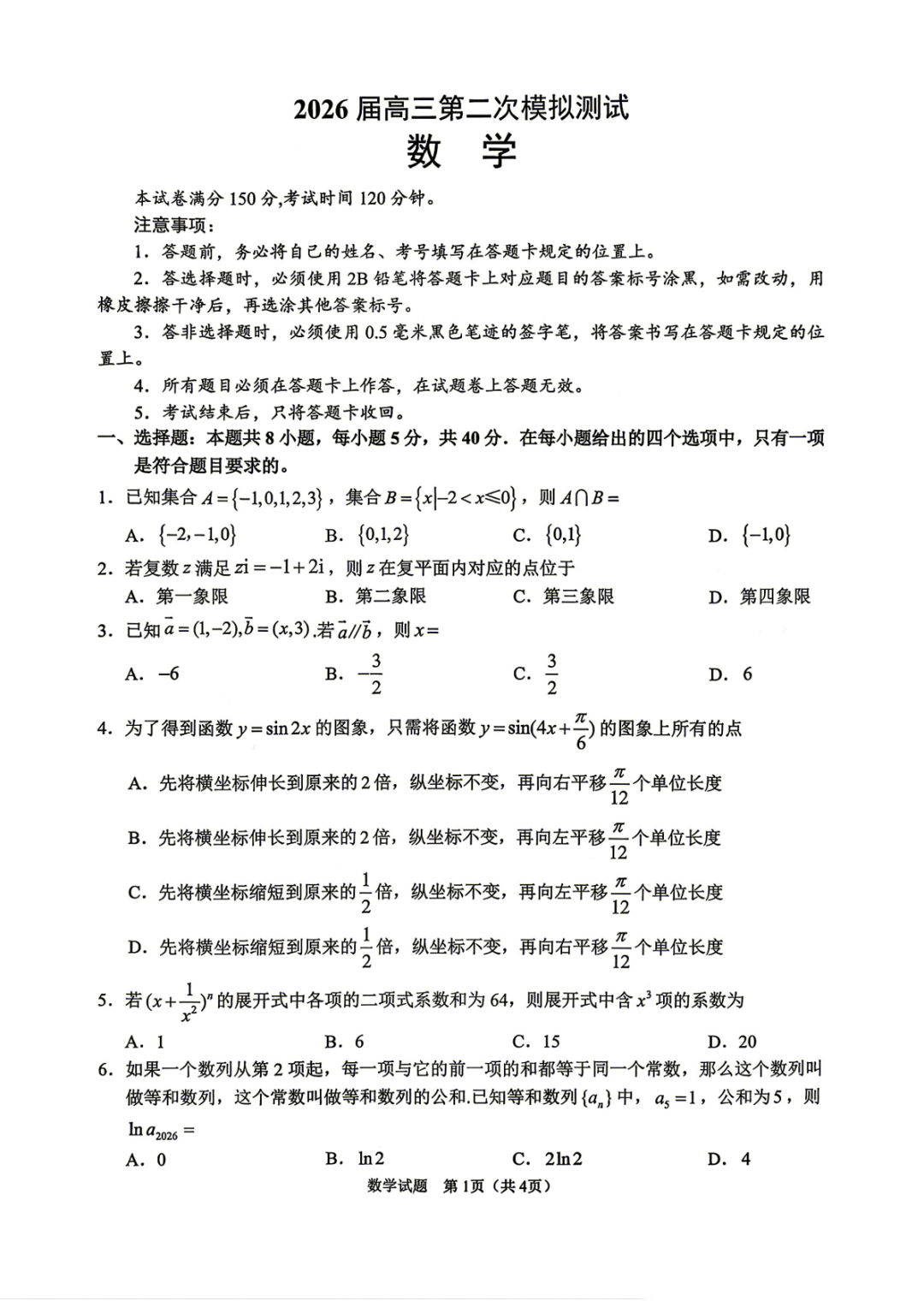 【眉山二诊全科】四川省眉山市2026届高三第二次模拟测试