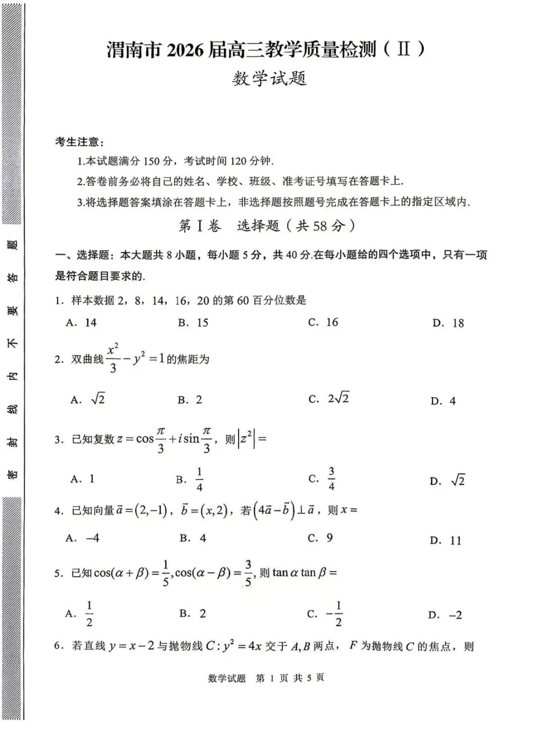 2026年陕西渭南高三二模教学质量检测二【渭南二模】