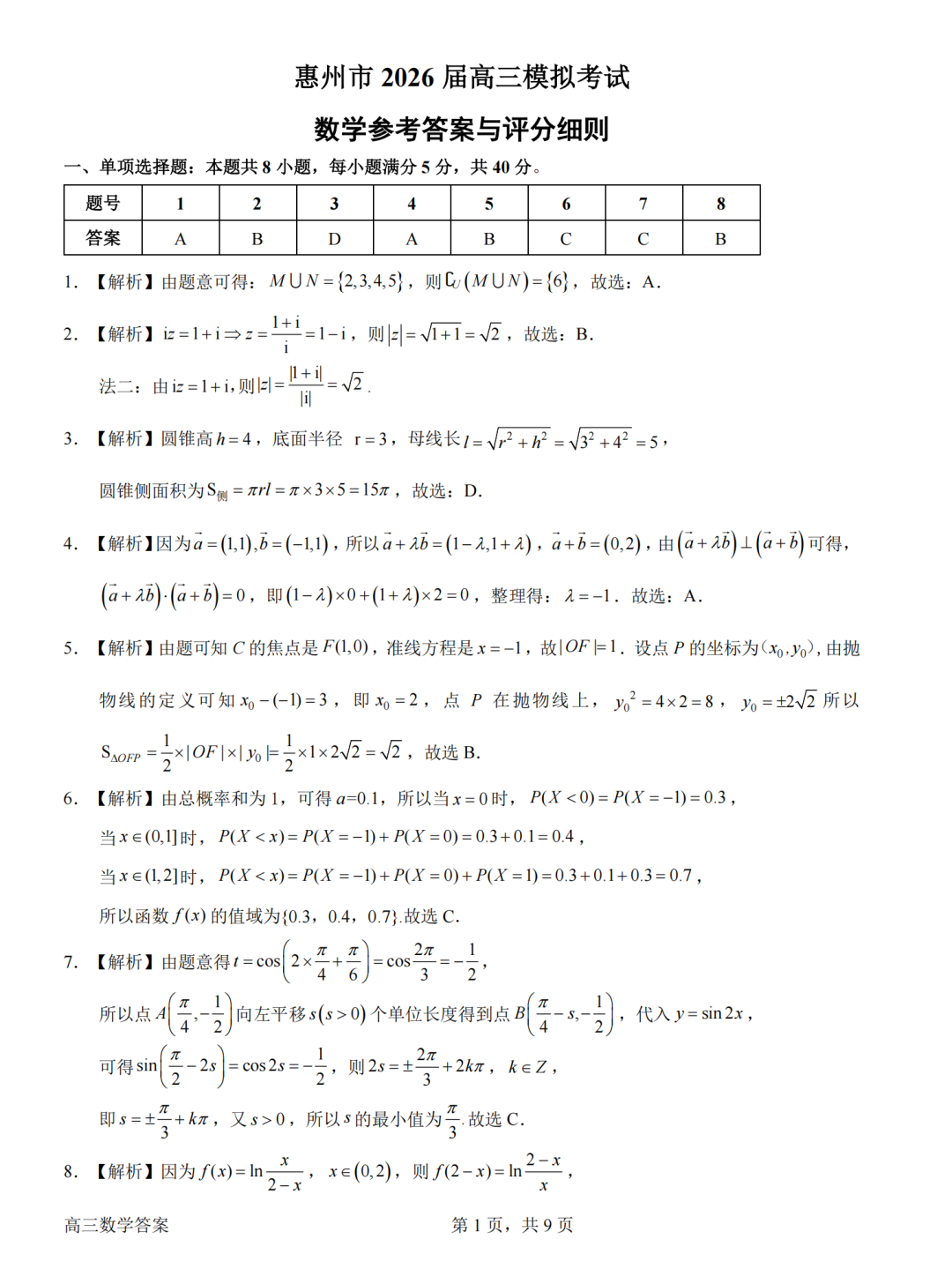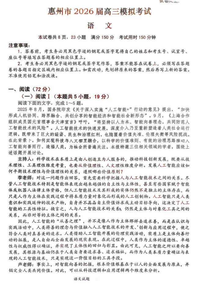 【广东卷】广东省惠州市、韶关市2026届高三年级4月模拟考试(惠州韶关统考同卷)(惠州韶关二模)(4.15-4.17) 数学物理英语语文历史试卷+答案