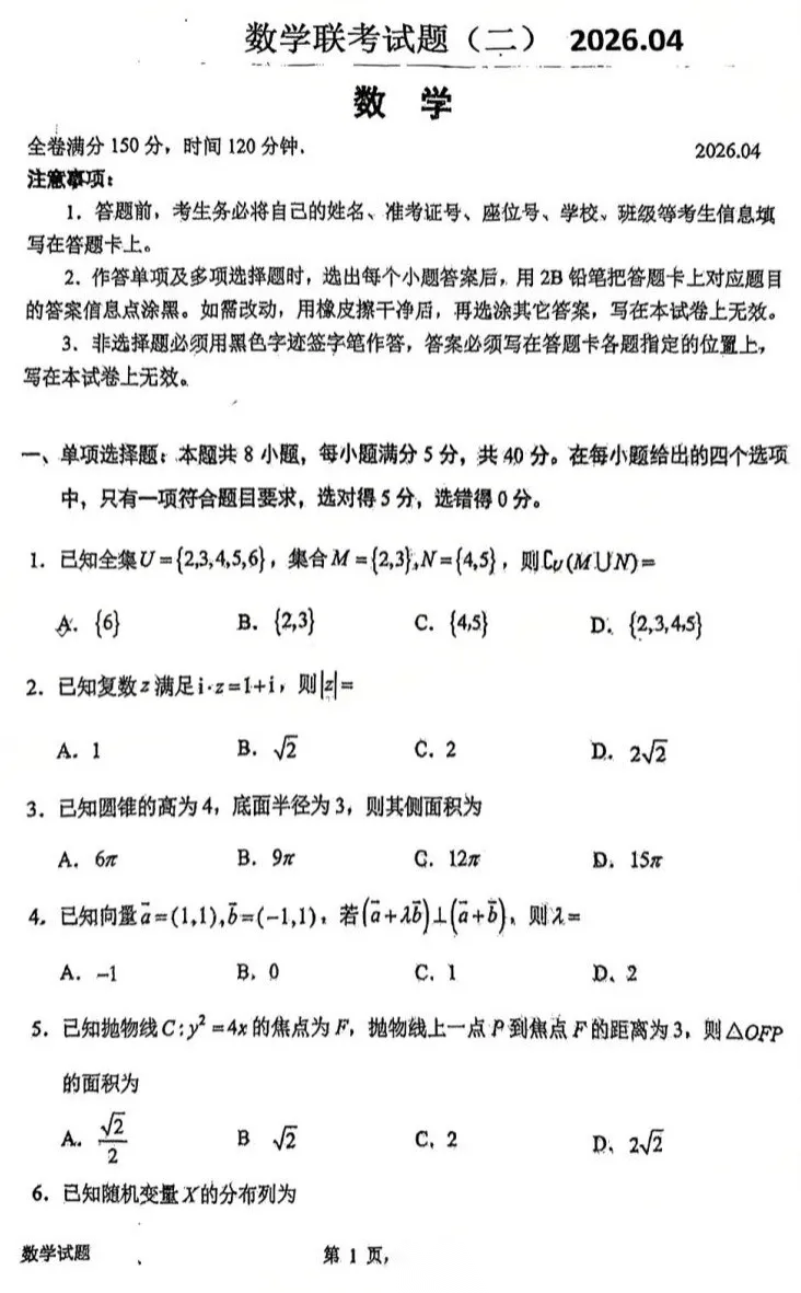【多考区卷】【百师联盟】百师联盟2026届高三年级考前适应性训练(一)暨冲刺卷1(4.15-4.16) 全科试题卷+答案 【多考区卷】【百师联盟】百师联盟2026届高三年级考前适应性训练(一)暨冲刺卷1(4.15-4.16) 全科试题卷...