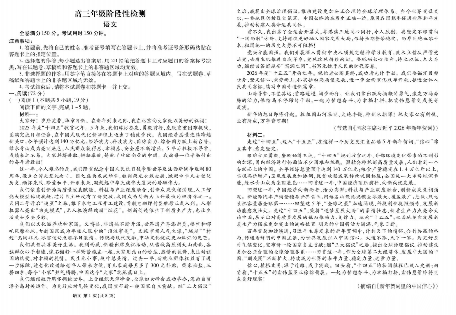 【多考区卷】【百师联盟】百师联盟2026届高三年级考前适应性训练(一)暨冲刺卷1(4.15-4.16) 全科试题卷+答案 【多考区卷】【百师联盟】百师联盟2026届高三年级考前适应性训练(一)暨冲刺卷1(4.15-4.16) 全科试题卷...