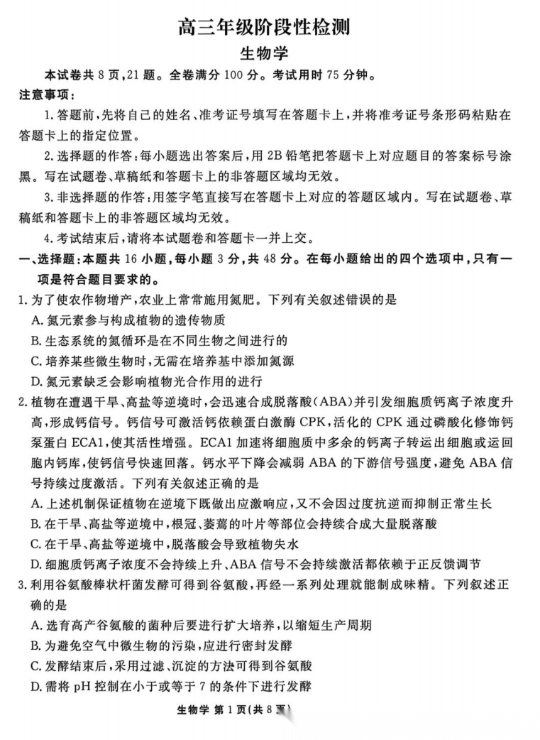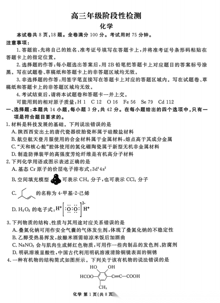 【西北卷】【陕西卷】陕西省衡水金卷暨安康阶段性检测2025-2026学年高三衡水金卷4月联考(4.16-4.17) 化学生物语文政治试题卷+答案