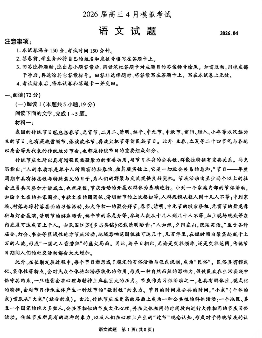 【云南贵州广西卷】云南省西南名校联盟2026届3+3+3高三年级下学期4月联考(4.16-4.17) 数学语文试题卷+答案 【云南贵州广西卷】云南省西南名校联盟2026届3+3+3高三年级下学期4月联考(4.16-4.17) 数学语文试题...