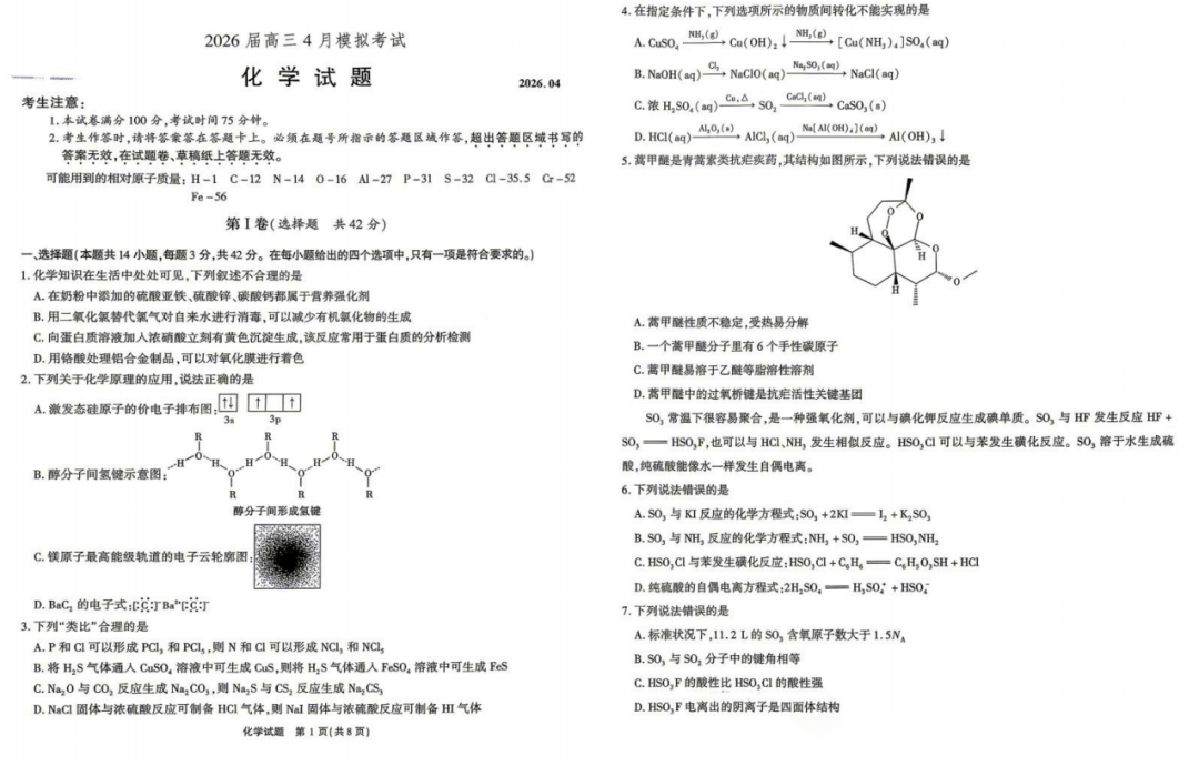 2026年陕西渭南高三二模教学质量检测二【渭南二模】 2026年陕西渭南高三二模教学质量检测二【渭南二模】