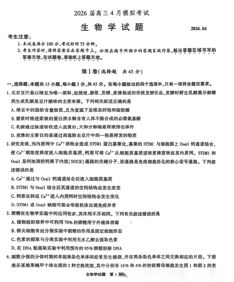 【多考区卷】【百师联盟】百师联盟2026届高三年级考前适应性训练(一)暨冲刺卷1(4.15-4.16) 全科试题卷+答案 【多考区卷】【百师联盟】百师联盟2026届高三年级考前适应性训练(一)暨冲刺卷1(4.15-4.16) 全科试题卷...