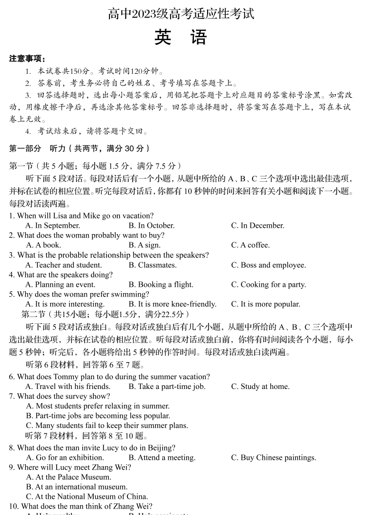 【四川卷】四川省雅安市2023级(2026届)高三年级第二次诊断性考试(雅安二诊)(4.8-4.10) 全科试题卷+答案 【四川卷】四川省雅安市2023级(2026届)高三年级第二次诊断性考试(雅安二诊)(4.8-4.10) 全科试题卷...
