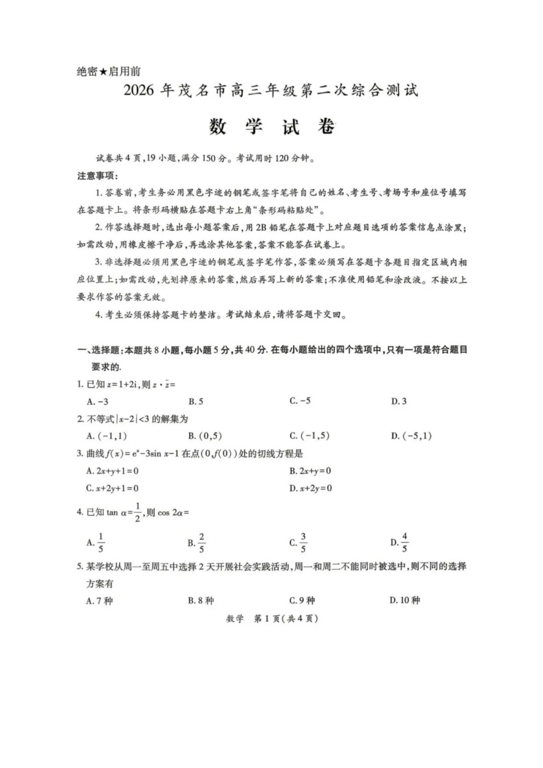 【四川卷】四川省绵阳市绵阳南山中学高2023级(2026届)高三年级高考模拟考试(3月下旬) 全科试题卷(缺地理)+答案 【四川卷】四川省绵阳市绵阳南山中学高2023级(2026届)高三年级高考模拟考试(3月下旬) 全科试题卷(缺地理)+答...