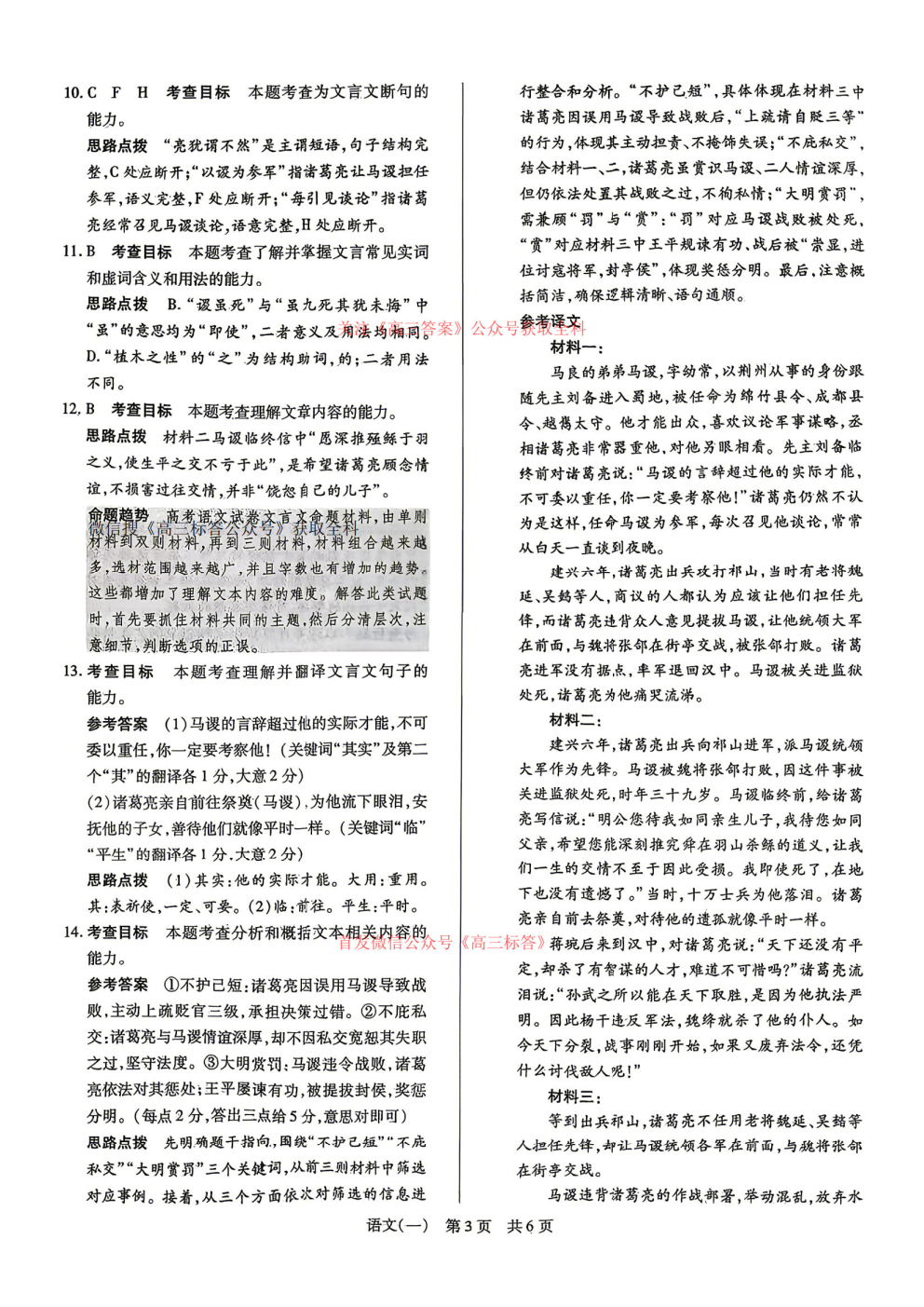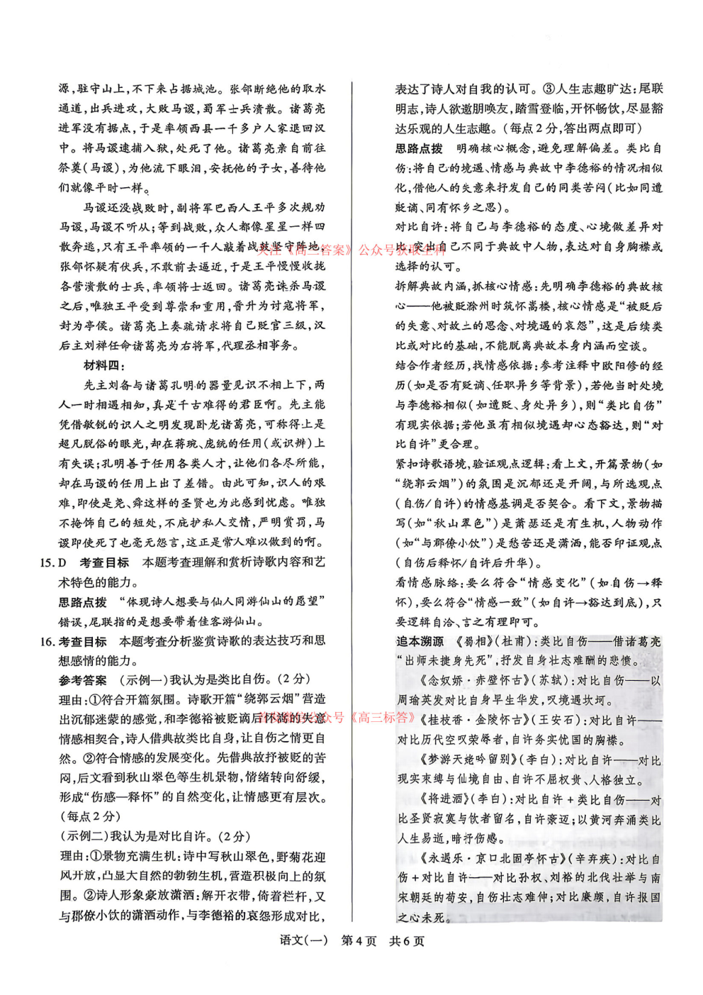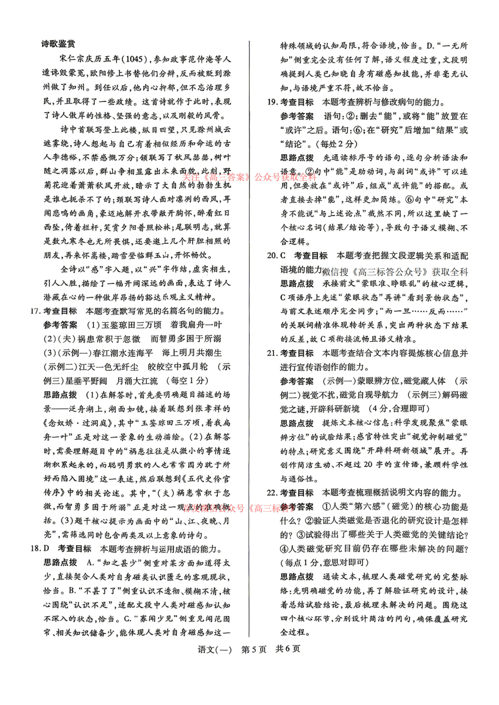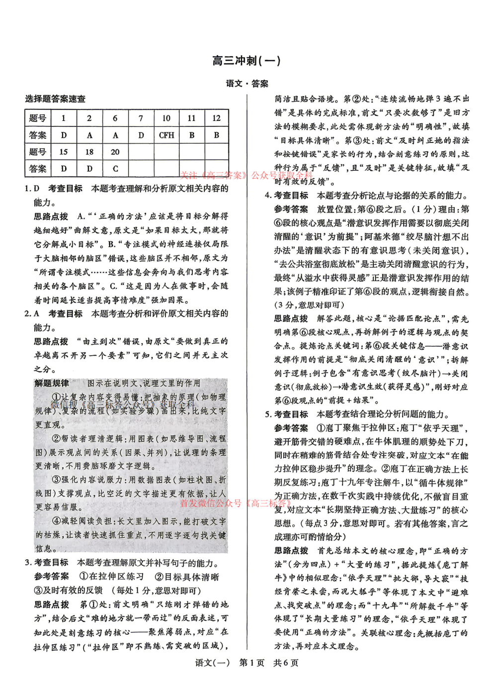 2026高三冲刺一答案