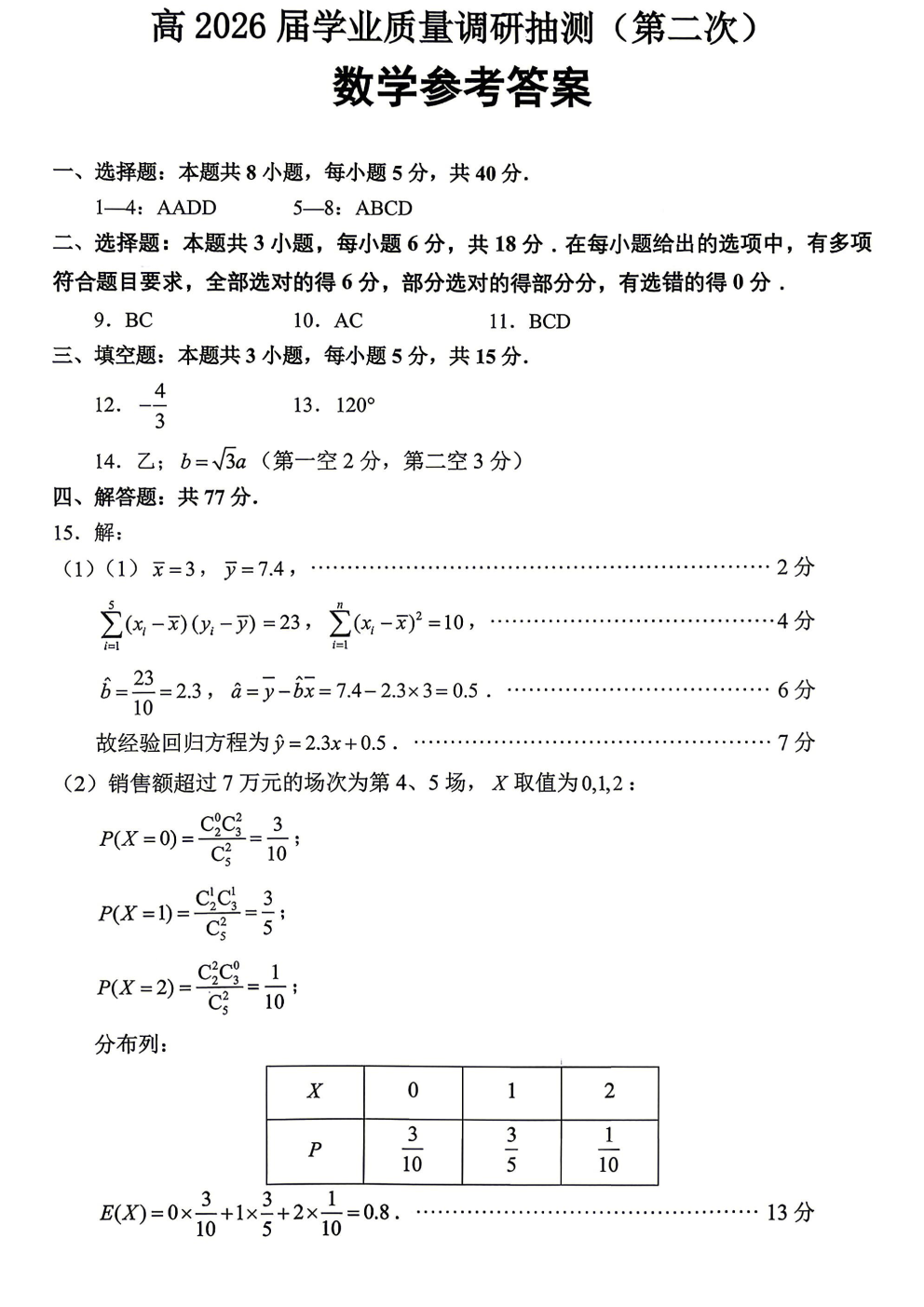 2026高三冲刺一答案 2026高三冲刺一答案