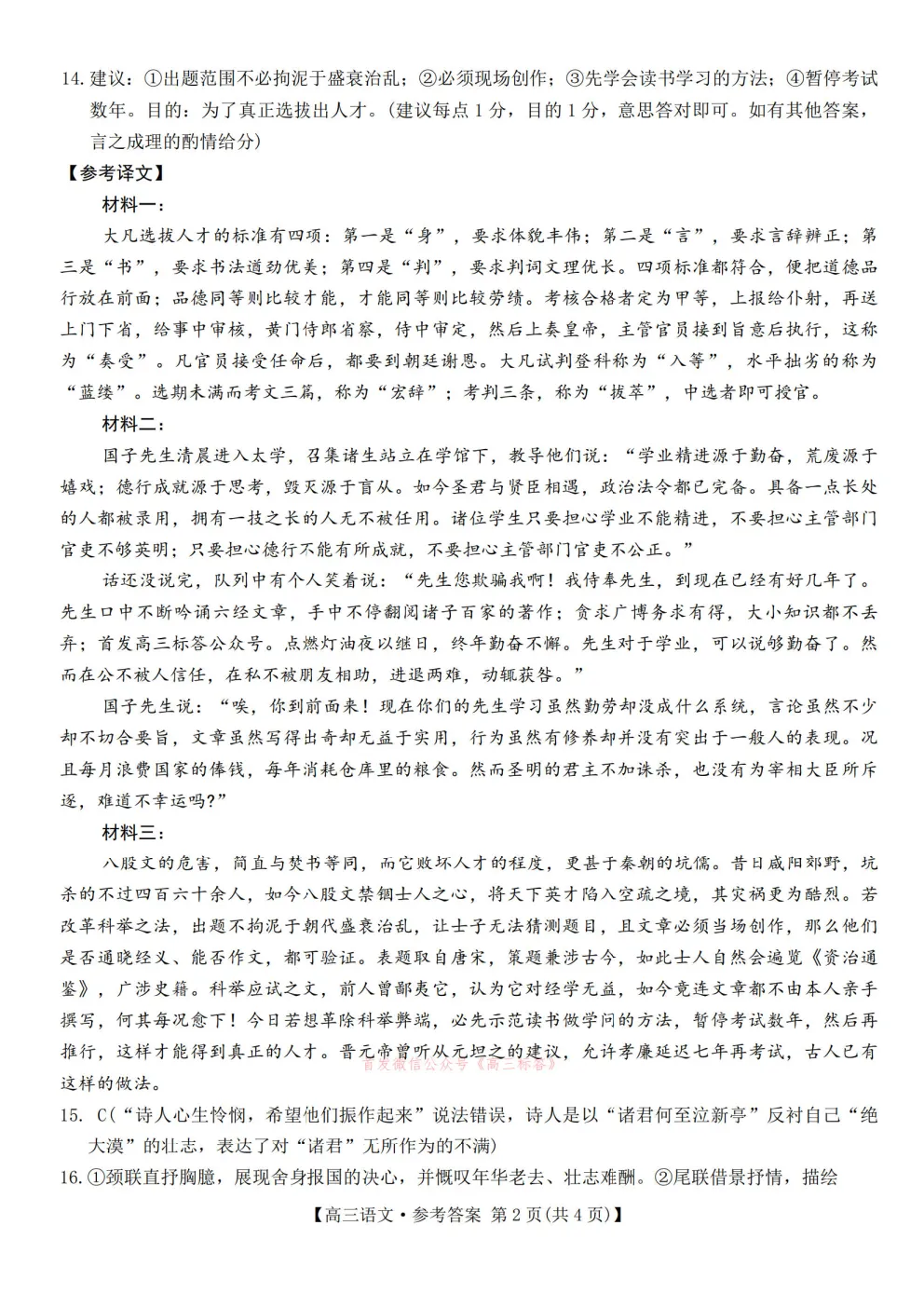 成都七中2025-2026学年度高三4月测试答案 成都七中2025-2026学年度高三4月测试答案