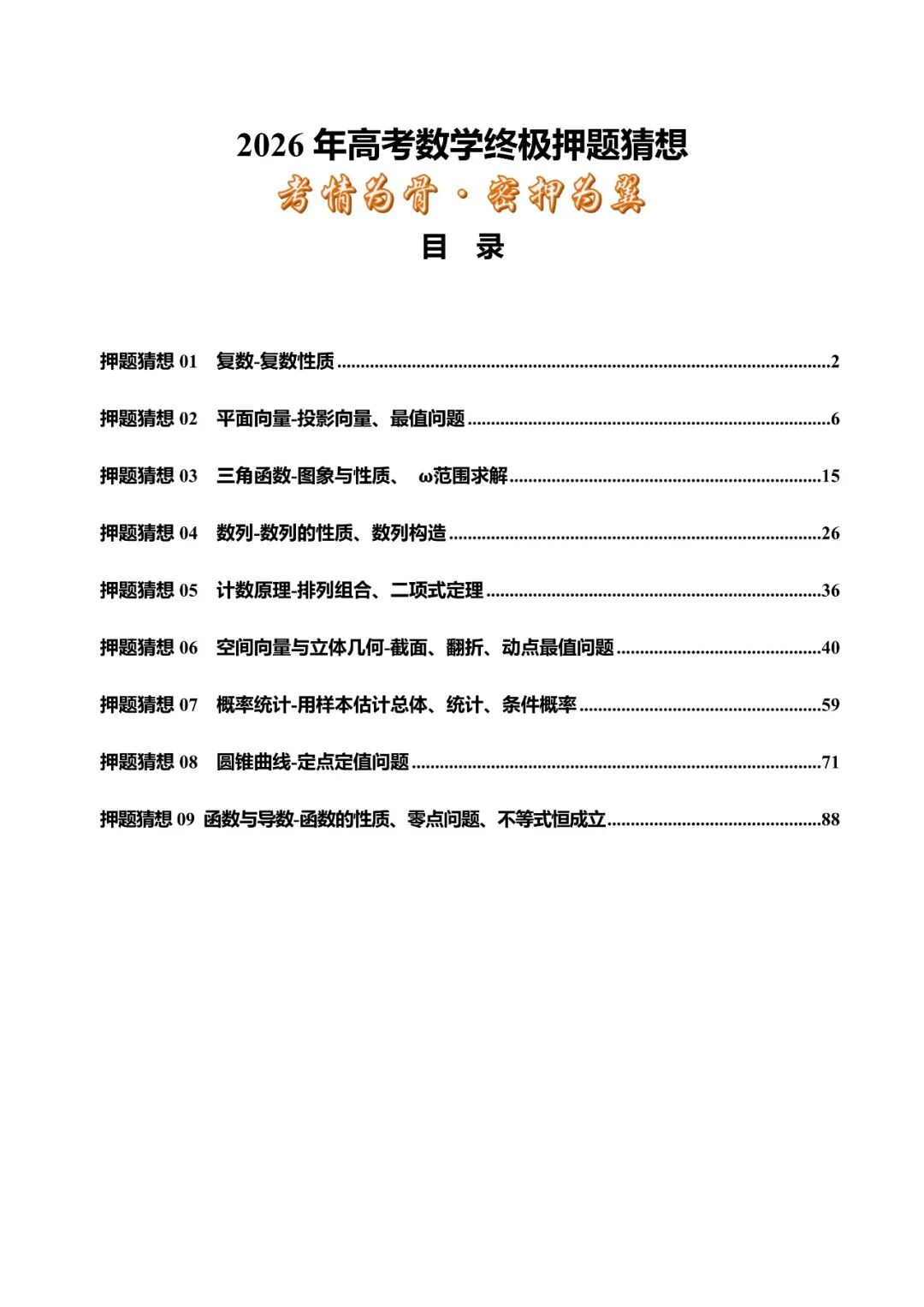 2026年高考数学终极押题猜想(全国一卷/全国二卷)