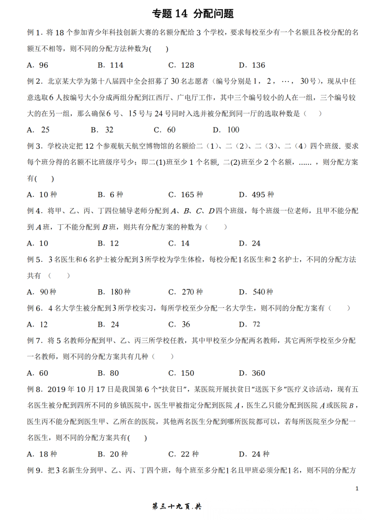 【独家】【高考数学】【重难点专练】高考数学考前50天冲刺重难点专训-排列组合满分突破二十大高频考点专训微专原卷版+精讲解析版(完整版)