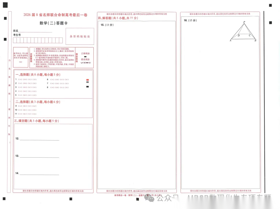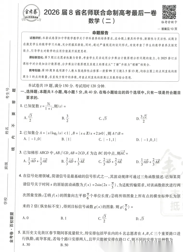 【高考数学】【最后一卷】JKJ百校联盟2026高考数学最后一卷-8省名师独家命制,固定高考命题点-理科全科试卷+答题卡+答案解析册(6科完整版)