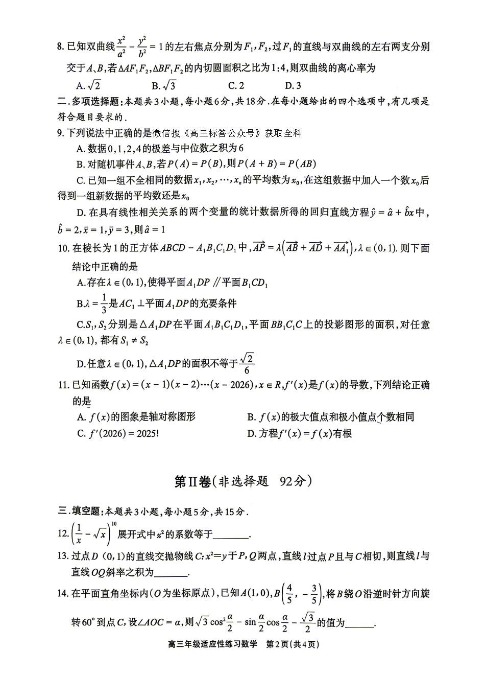 【全科】四川省蓉城名校联盟2026届高三第二次联合诊断性考试 【全科】四川省蓉城名校联盟2026届高三第二次联合诊断性考试