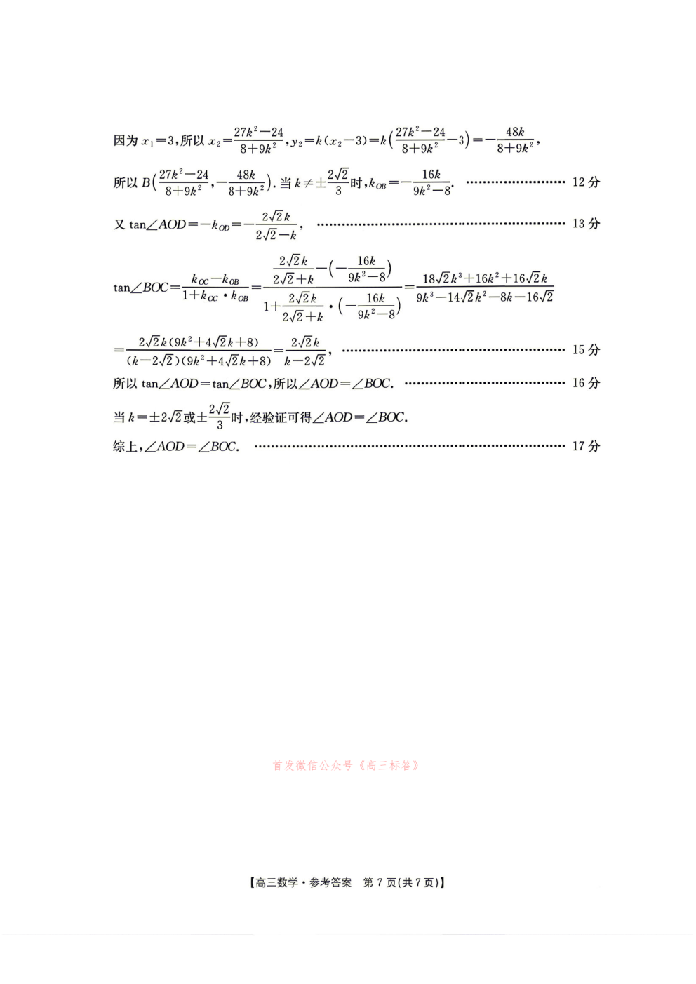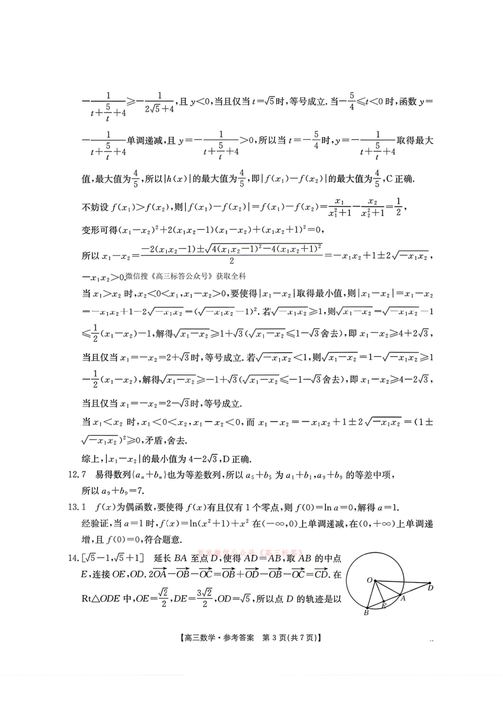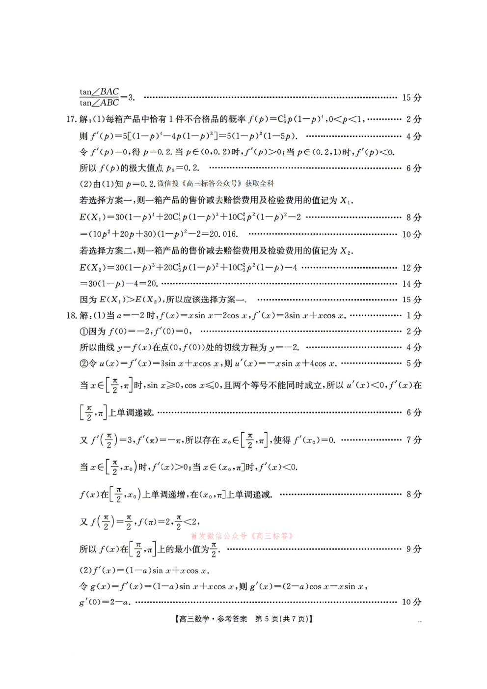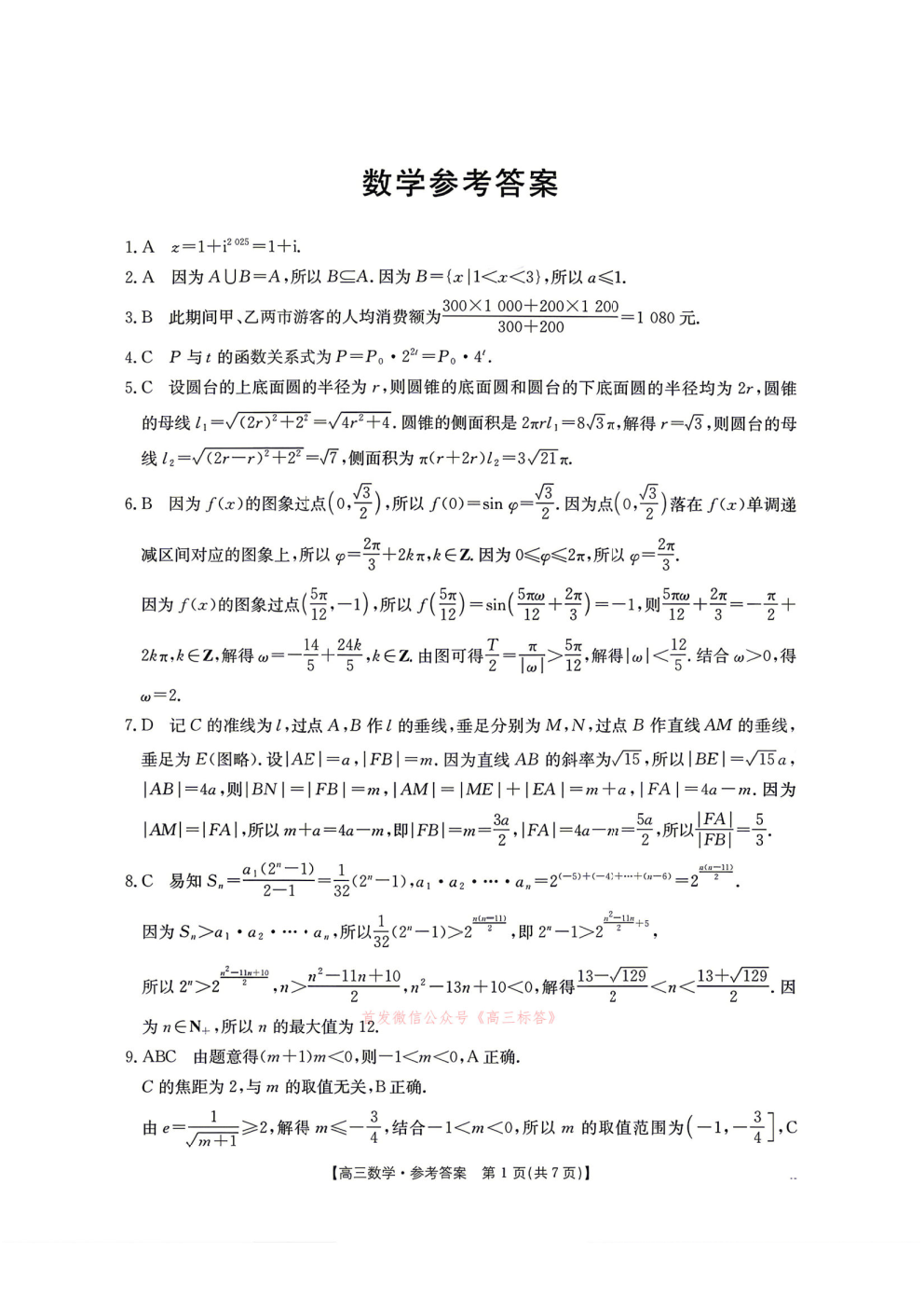 【绵阳三诊】四川省高三年级4月适应性练习答案 【绵阳三诊】四川省高三年级4月适应性练习答案