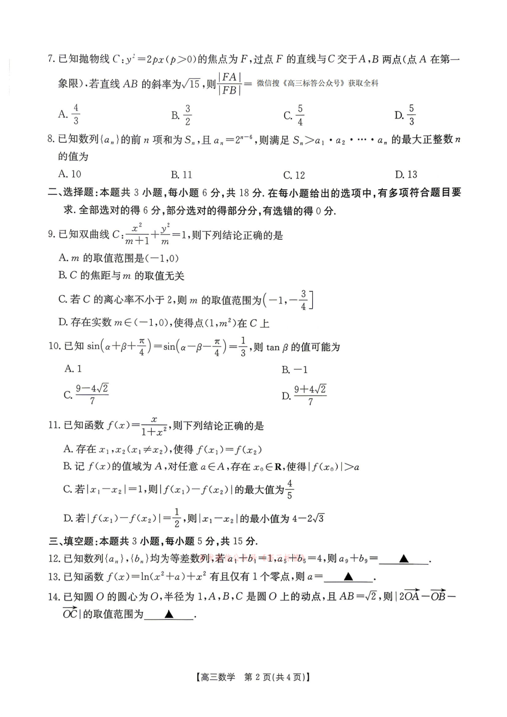 【怀化二模】2026届怀化市高三4月联考答案
