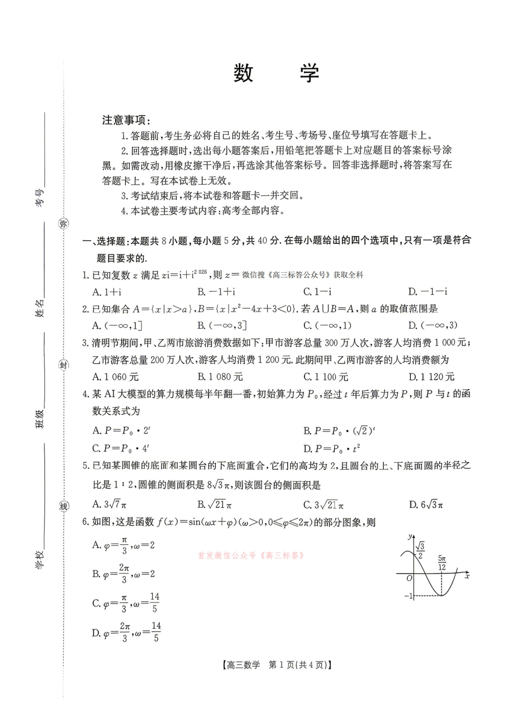 【湖南卷】【广西卷】湖南省、广西壮族自治区天一大联考2026年高三年级4月联考(4.16-4.17) 全科试题卷+答案 【湖南卷】【广西卷】湖南省、广西壮族自治区天一大联考2026年高三年级4月联考(4.16-4.17) 全...