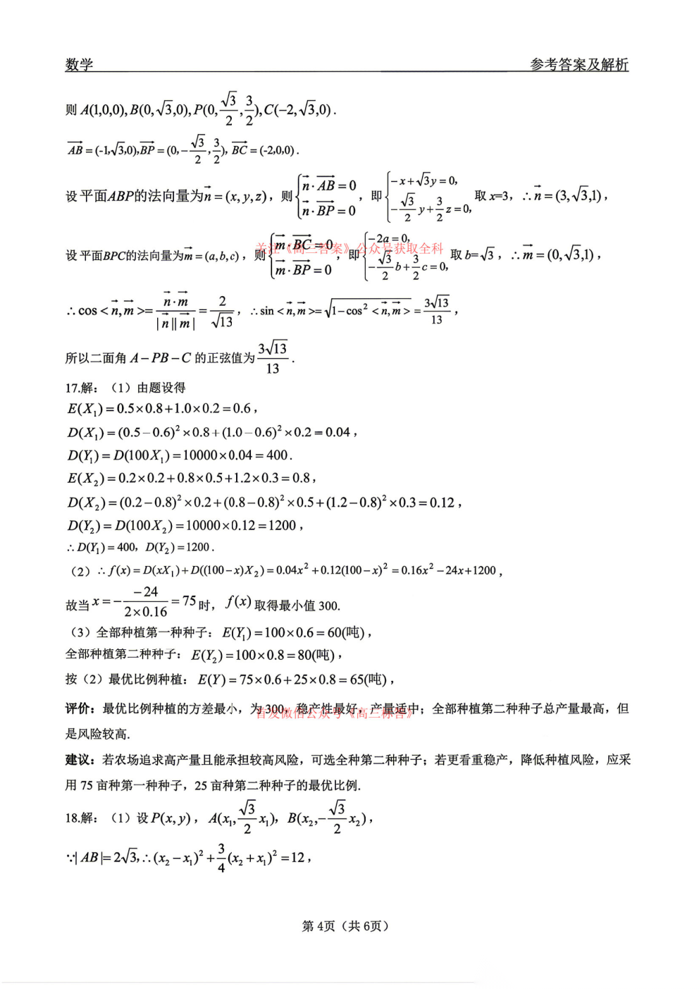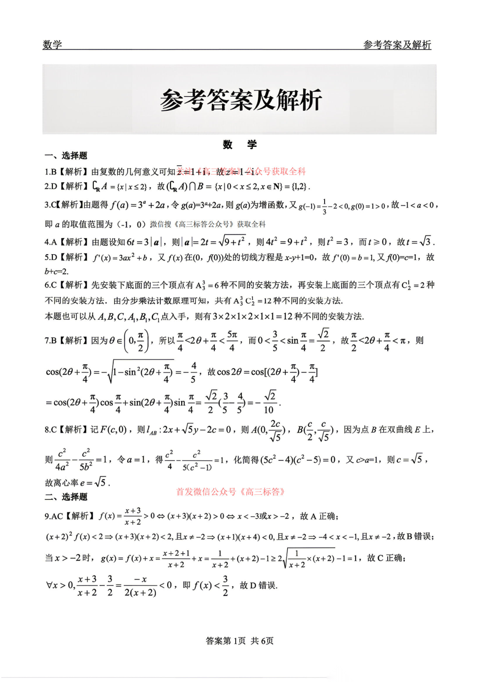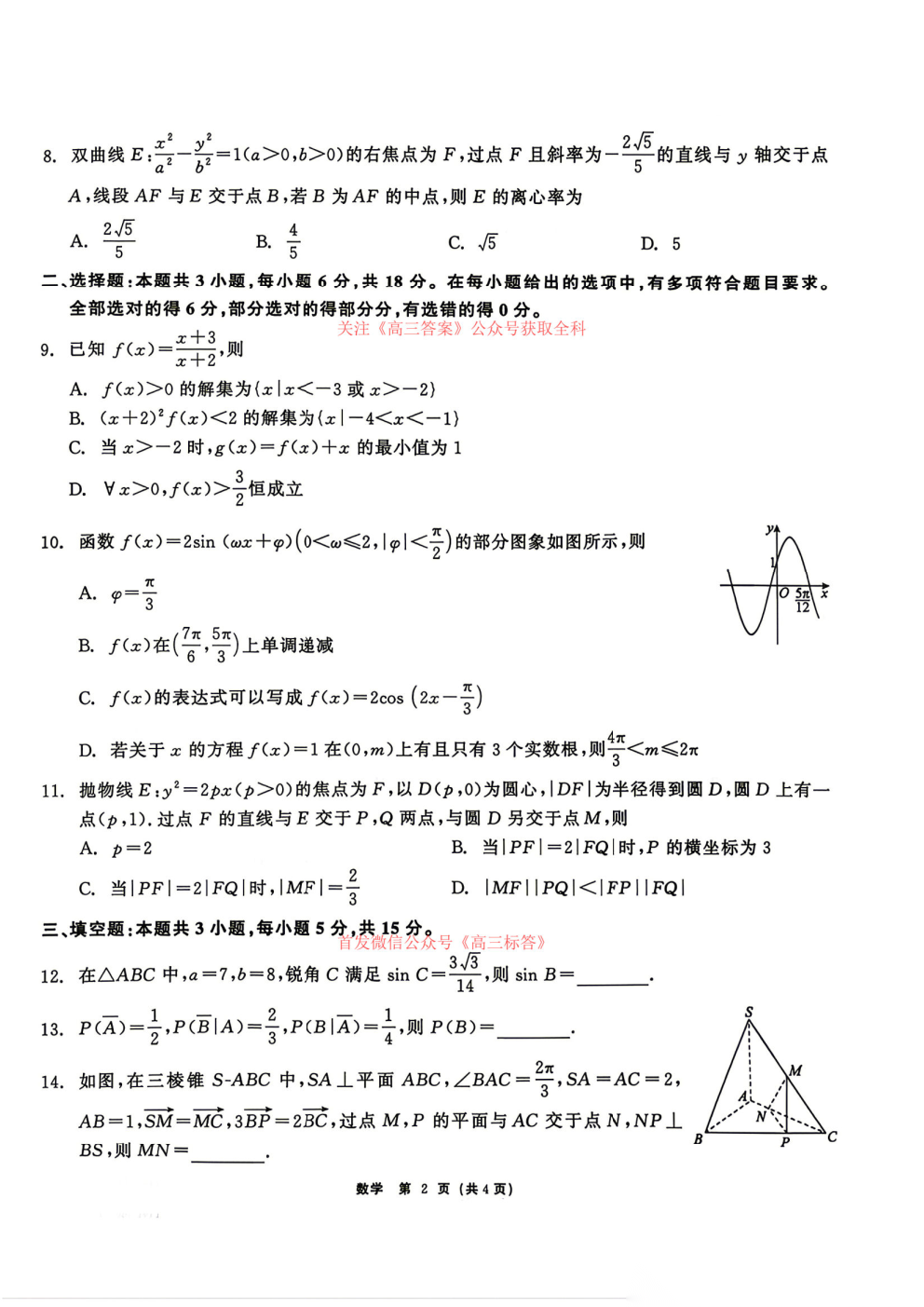 【怀化二模】2026届怀化市高三4月联考答案 【怀化二模】2026届怀化市高三4月联考答案