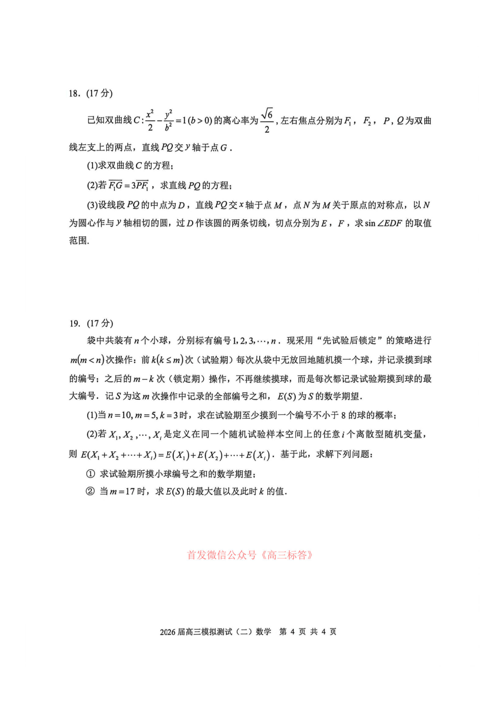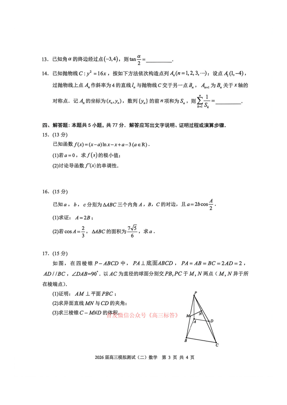 2026齐齐哈尔市高三二模答案(4月20) 2026齐齐哈尔市高三二模答案(4月20)