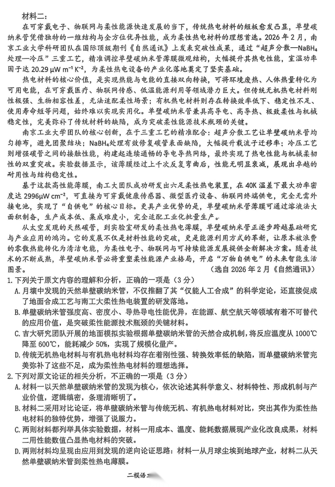 【郑州二模】郑州市2026年高中毕业年级第二次质量预测答案 【郑州二模】郑州市2026年高中毕业年级第二次质量预测答案