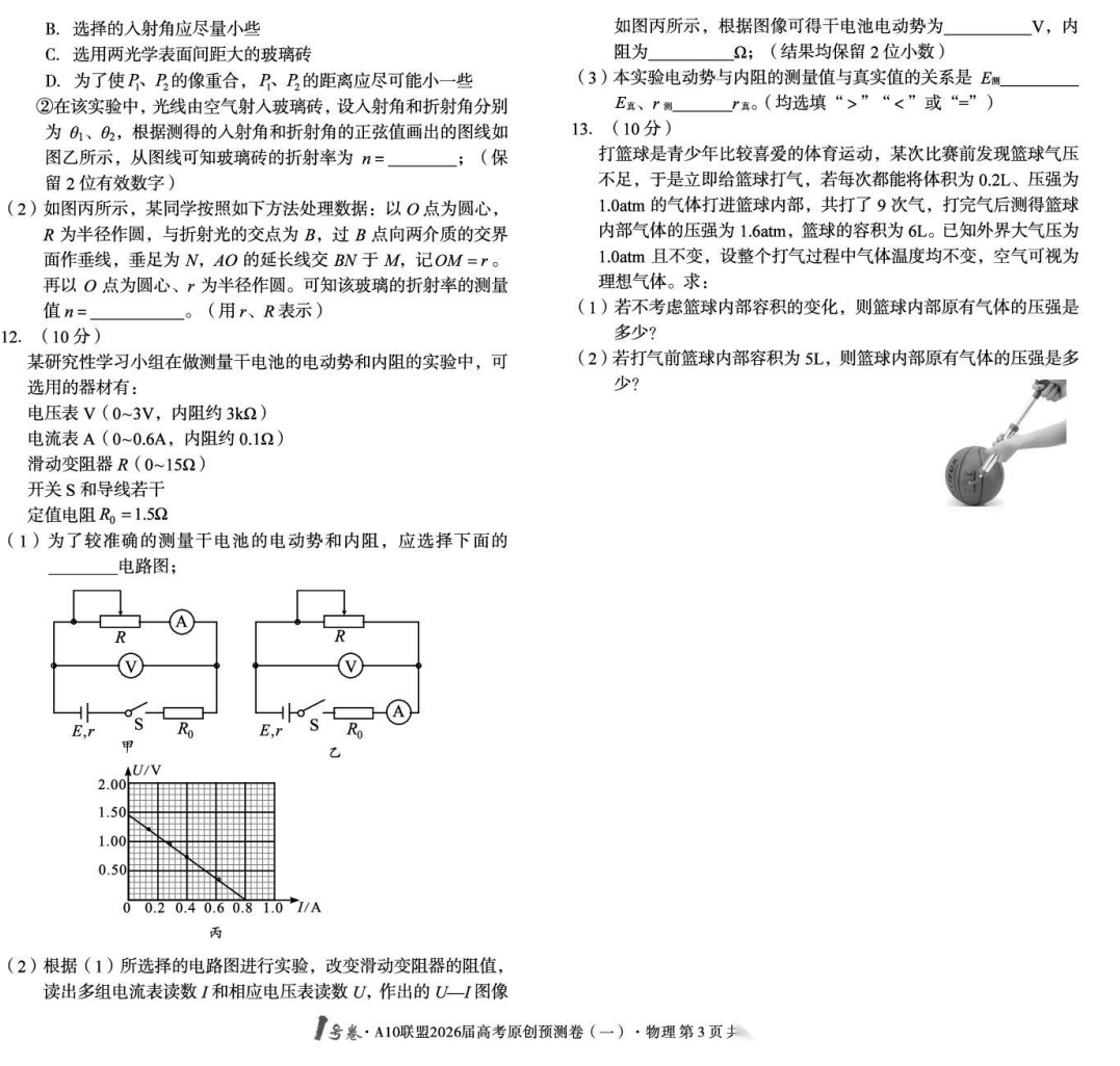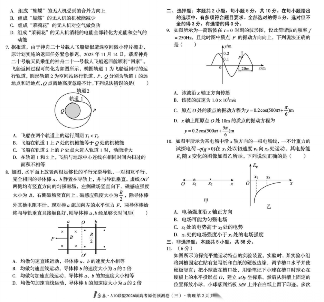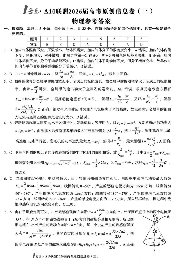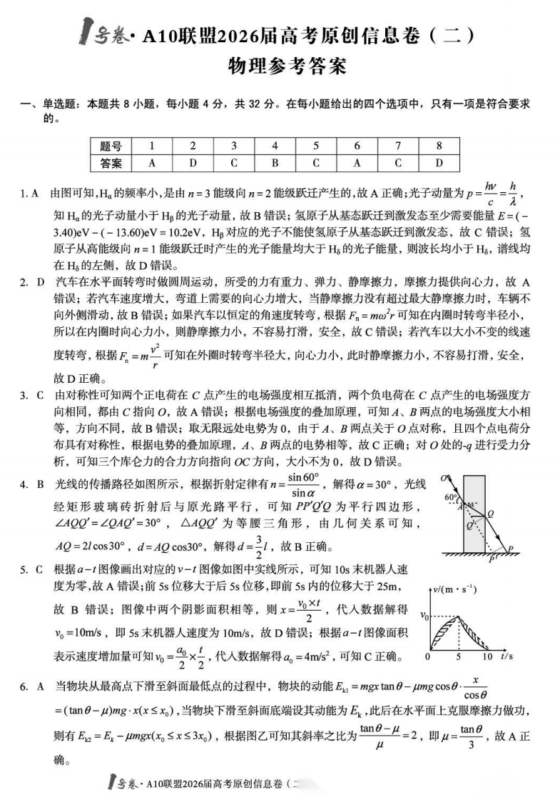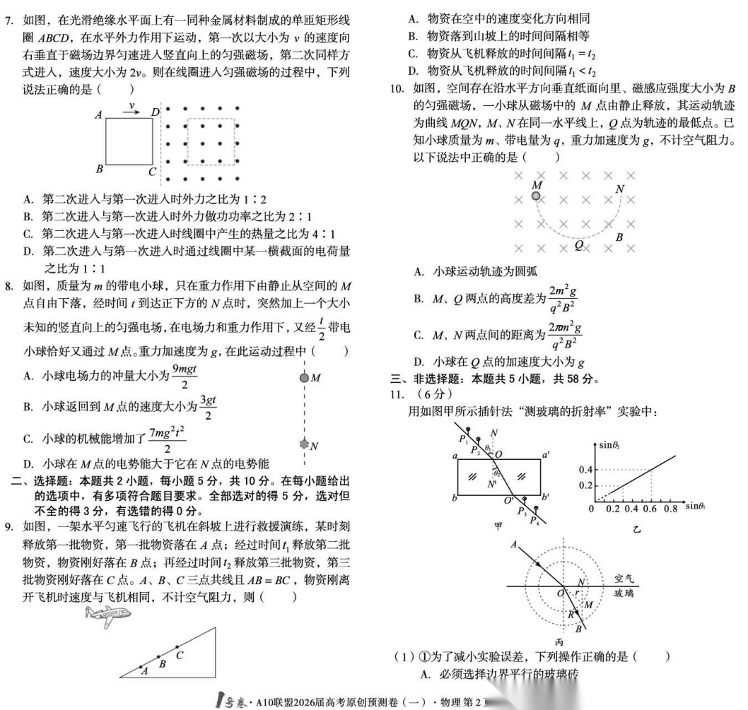 【安徽卷】【物理预测卷】安徽1号卷·A10联盟2026届高三下学期高考原创预测卷(一)(二)(三) 物理三套试题卷+答案