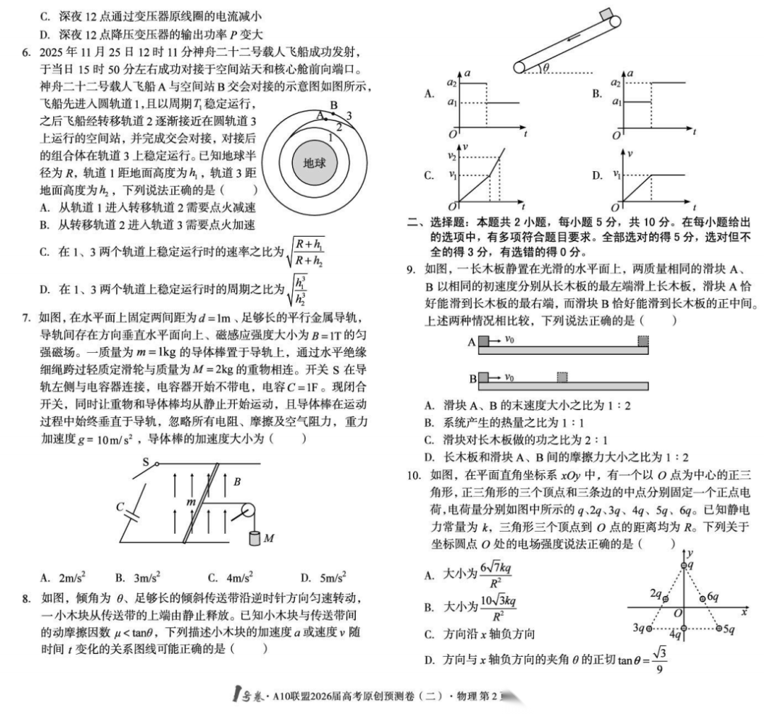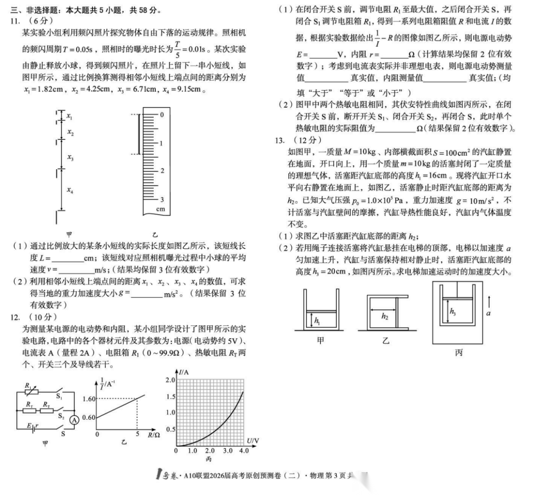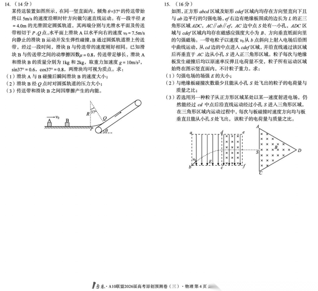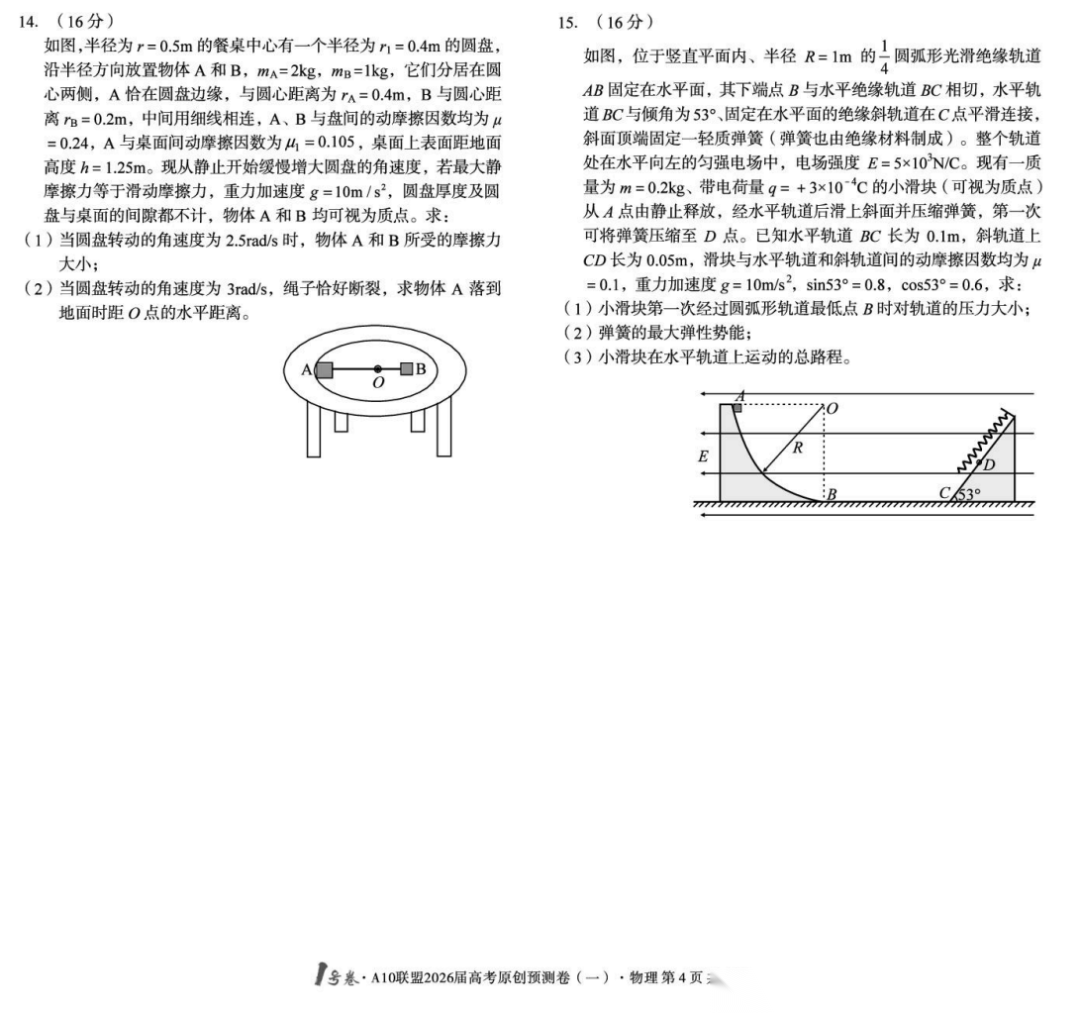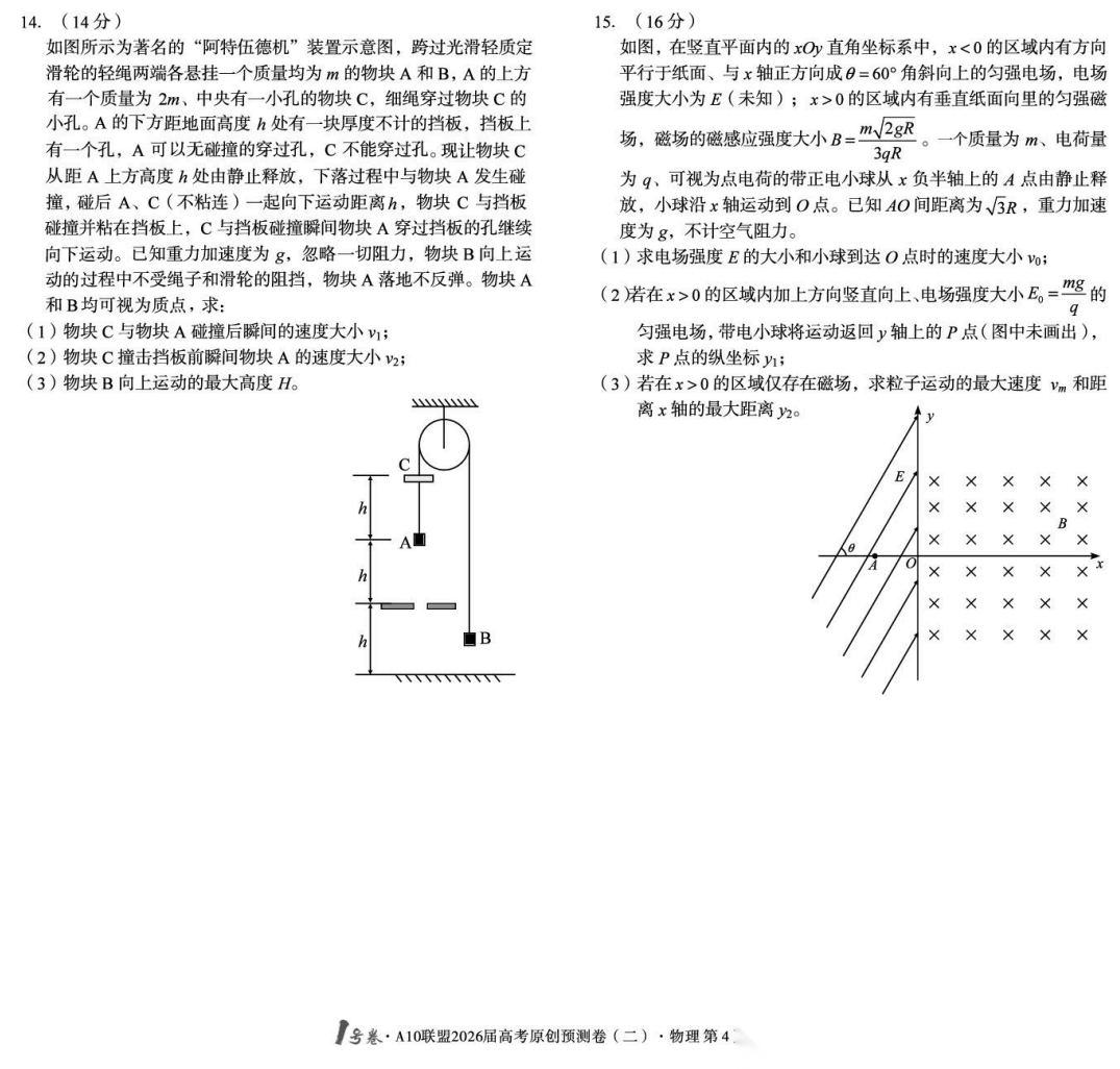 【安徽卷】【物理预测卷】安徽1号卷·A10联盟2026届高三下学期高考原创预测卷(一)(二)(三) 物理三套试题卷+答案