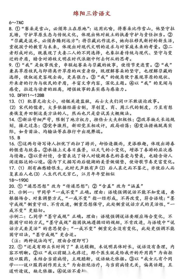 【四川卷】四川省绵阳市高中2023级(2026届)高三年级第三次诊断性考试(绵阳三诊)(4.20-4.22) 数学语文试题卷+答案