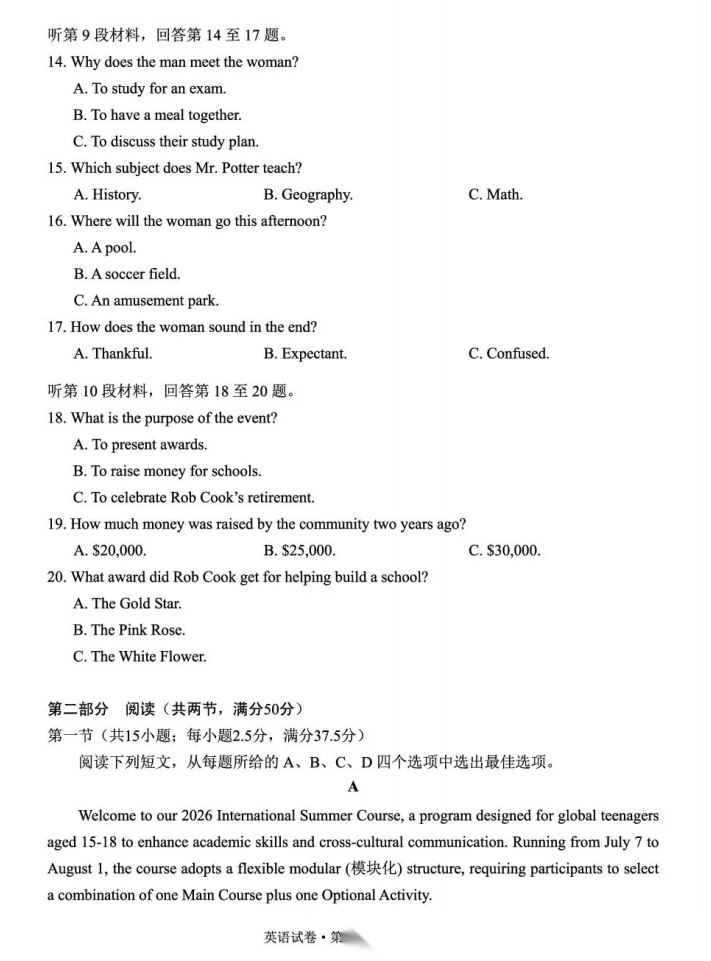 【广东卷】广东省清远市2026届普通高中毕业班高三年级供题综合测试(二)(清远二模)(4.20-4.22) 数学语文试题卷+答案 【广东卷】广东省清远市2026届普通高中毕业班高三年级供题综合测试(二)(清远二模)(4.20-4.22) ...