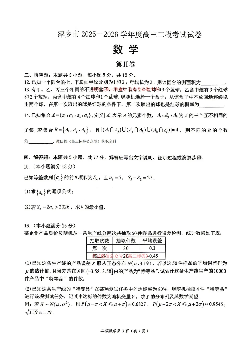 【全科】内蒙古包头市2026届高三下学期二模考试 【全科】内蒙古包头市2026届高三下学期二模考试