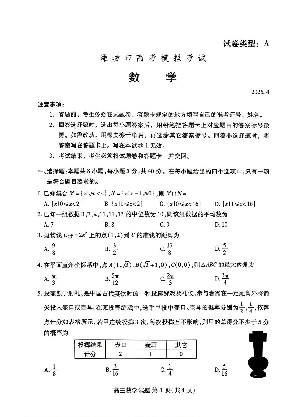 【潍坊二模】潍坊市高考4月模拟考试